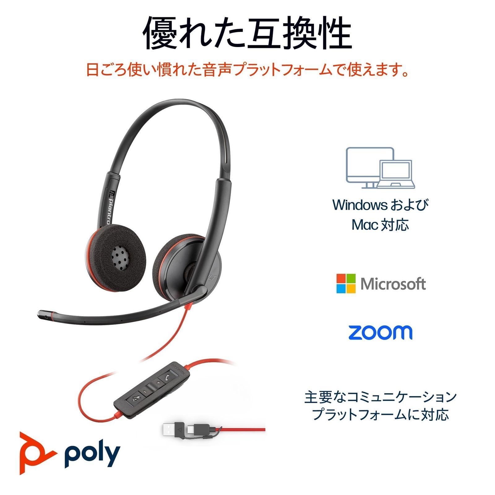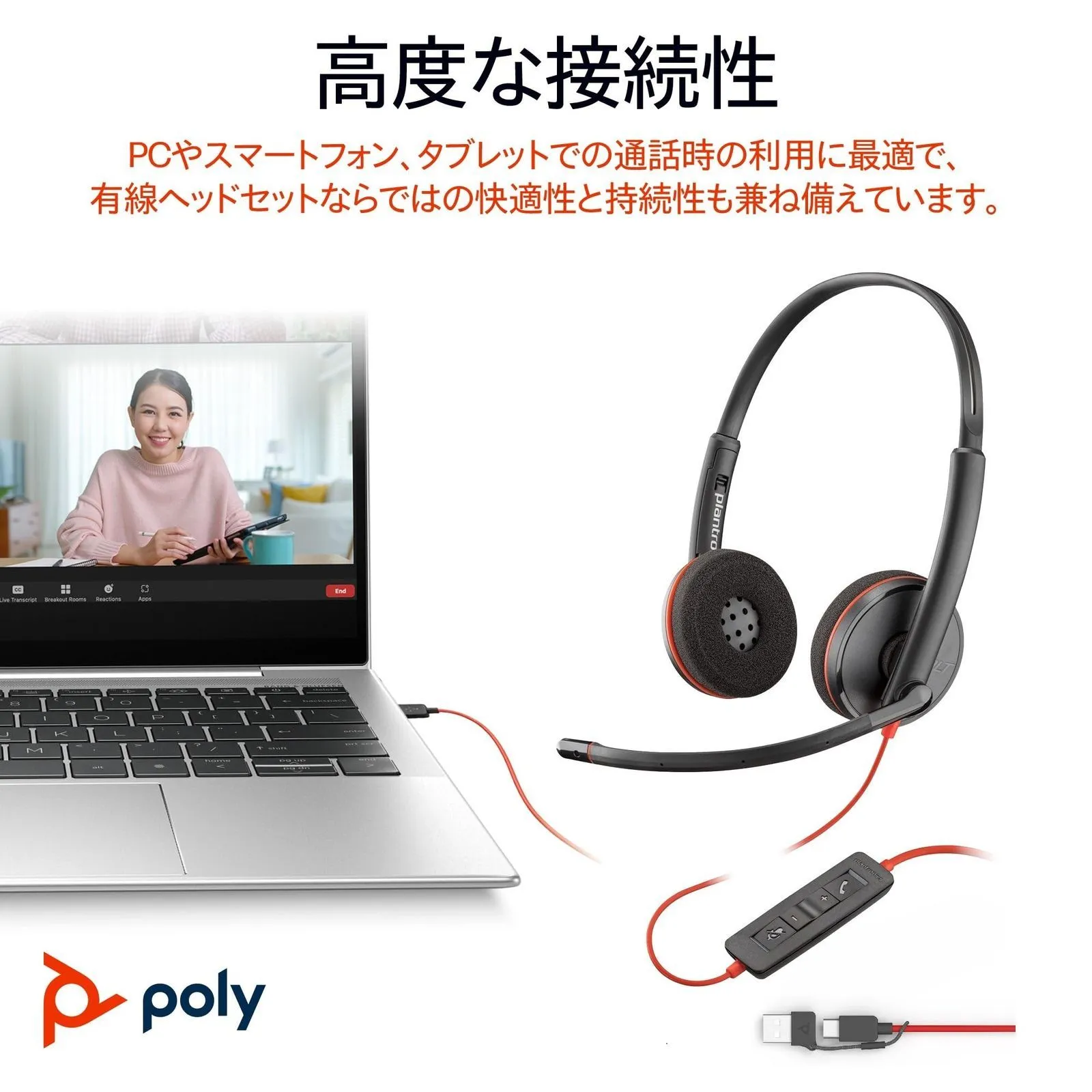【迅速発送】【限定】Poly 有線ヘッドセット Blackwire 3220 (国内正規品) USB-C & USB-A ノイズキャンセリング マイク付き 軽量 【2年間メーカー保証】 windows mac Chrome Web会議用 イヤホン マイク (旧