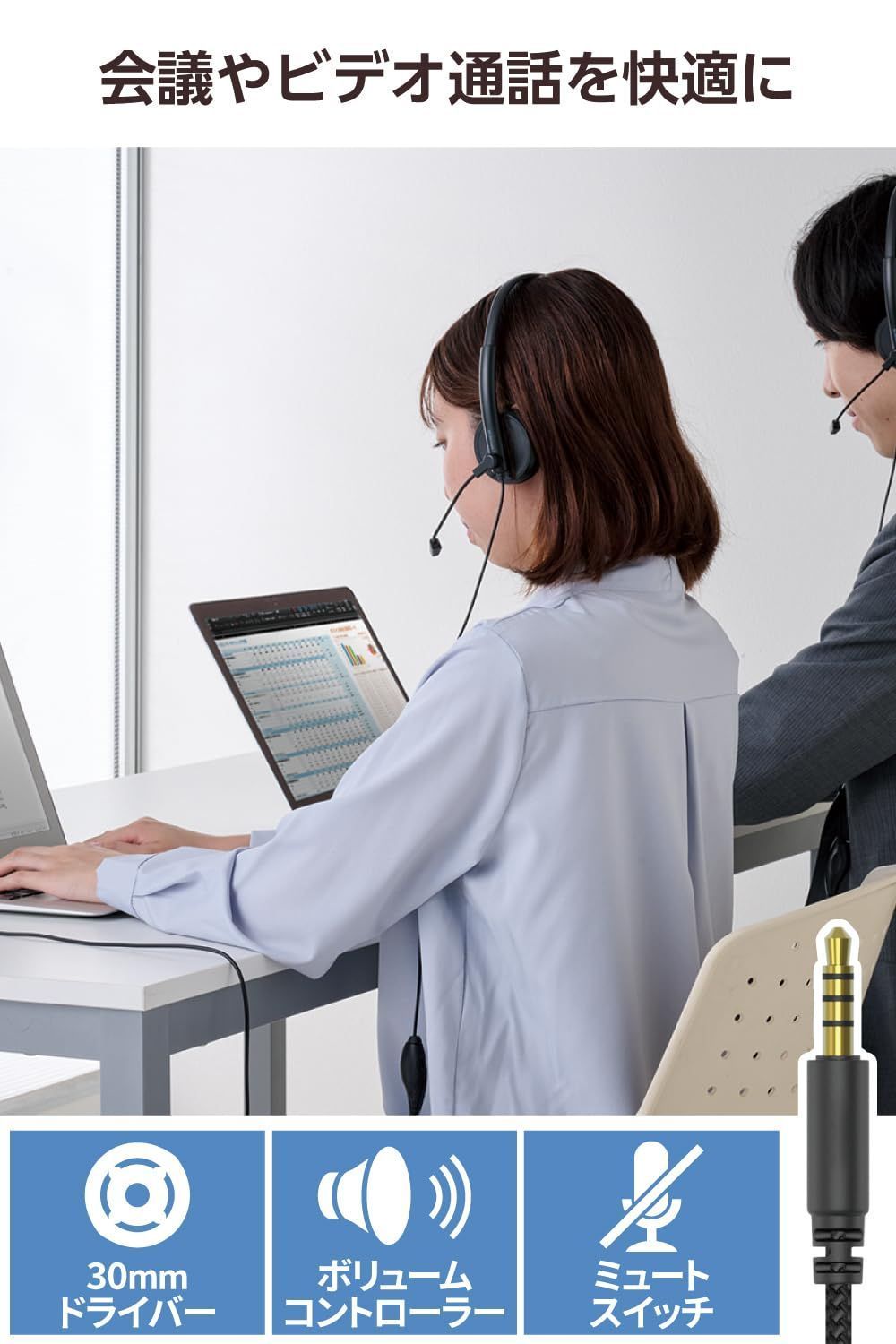 【迅速発送】エレコム ヘッドセット 4極 3.5mm ノイズキャンセリング 単一指向性 軽い 有線 マイク付き ヘッドホン 長時間 ウェブ会議 テレワーク ブラック HS-HP06STBK