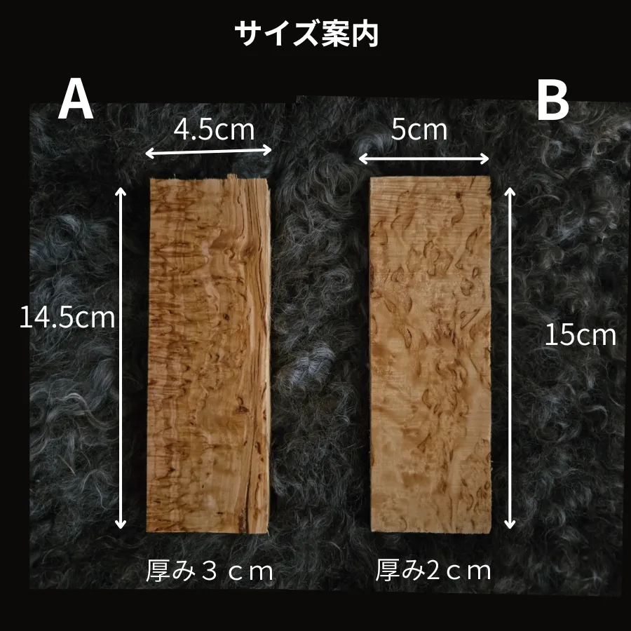 【こんな方におすすめ】 - ウッドカービングを始めたい方 - ナイフハンドル材を探している方 - 杢目の美しさを活かした作品を作りたい方 - 北欧・自然素材好きなクラフト作家 ※ご注意 - 杢目の個性を理由とした返品・交換は承っておりません。 - 木材のみの販売となります。 - 天然素材のため、かけ、傷などある場合がございます あなたの手で、世界にひとつだけの作品を。カーリーバーチの美しさを、ぜひ彫り出してください。