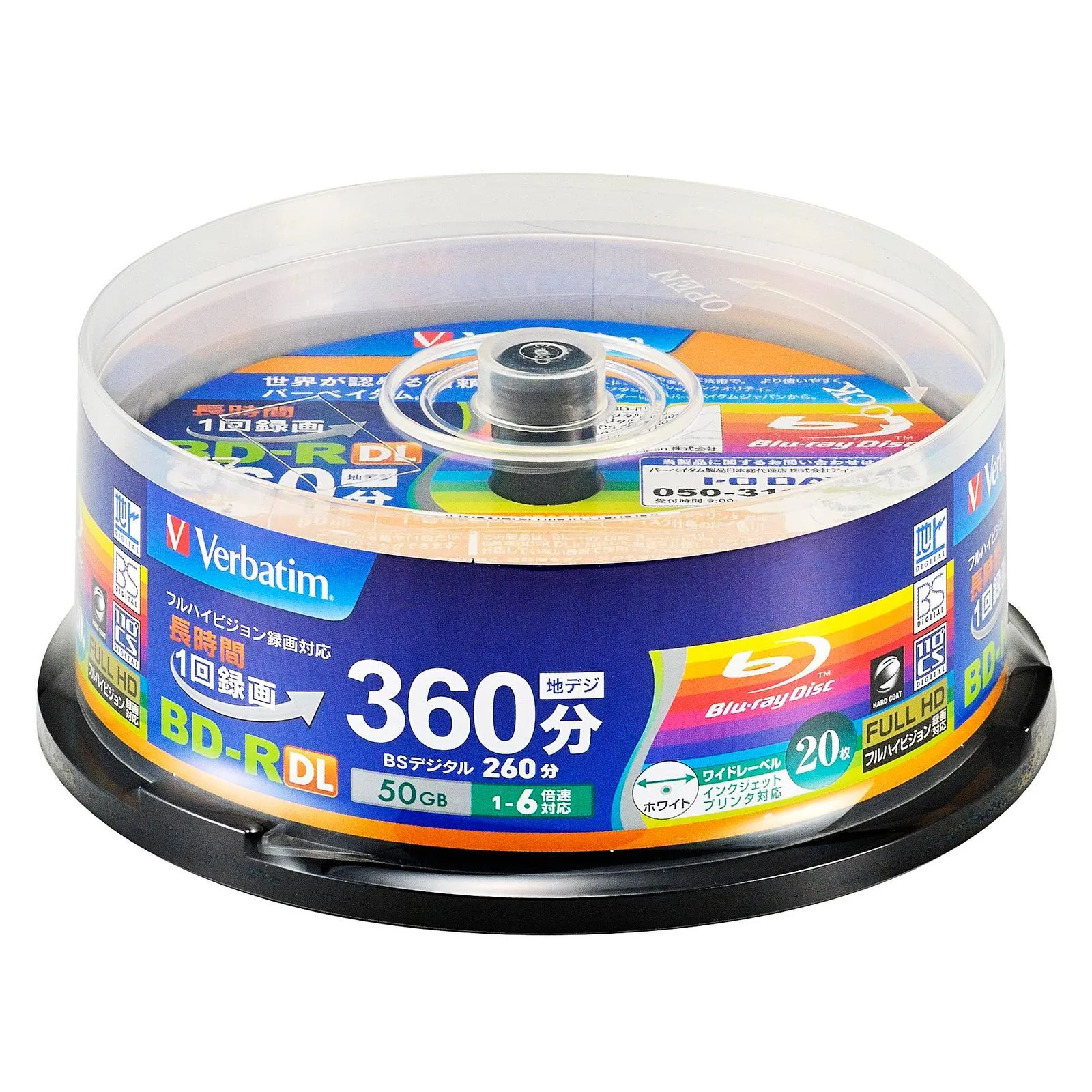 【迅速発送】バーベイタム (Verbatim) 1回録画用 ブルーレイディスク BD-R DL 50GB 片面2層 1-6倍速 20枚 ディーガ など国内主要メーカーのレコーダー動作確認済 ホワイトディスク VBR260RP20SV1