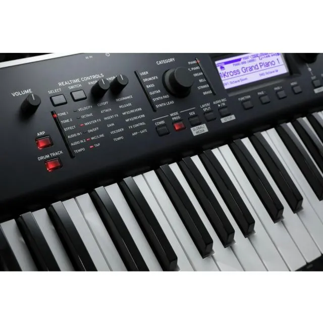 ●求める音色や機能に迷わずアクセス 沢山の機能があるからこそ、分かりやすく。KROSS2は前モデルをさらにブラッシュアップした使いやすいパネル・レイアウトで、膨大なサウンドや機能に誰でも素早くアクセスすることができます。 ・リアルタイム・コントロール・セクション メニュー階層を潜ることなく主要なパラメーターを直接コントロールできるリアルタイム・コントロール・セクションを新搭載。サウンドエフェクトのリアルタイム・コントロールや、プログラムの簡易的なエディットに加え、ボコーダーの設定や、アルペジエーターシーケンサーのテンポ調整もノブで簡単に行えます。 ・フェイバリット機能 お気に入りのプログラムやコンビネーションを登録してワンタッチで呼び出しできるフェイバリット機能は、前モデルの倍となる合計128個まで登録可能に。ステージでの使用に最適です。 ・クイック・レイヤー/スプリット 2つの音色を重ねたり、左右の鍵盤に別々の音色を割り当てるレイヤー/スプリット機能も、専用のクイック・ボタンで手軽にセットアップ可能です。 ・カテゴリー・ダイヤル 多彩な音色の中から自分の探したい音をすぐに見つけられるようカテゴリー・ダイヤルを用意。ピアノ、オルガンなど音色のおおまかな種類を選んで、スピーディーな選択が可能です。