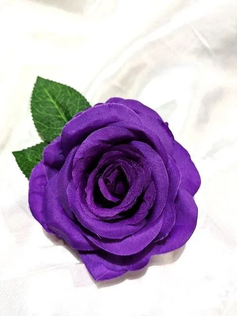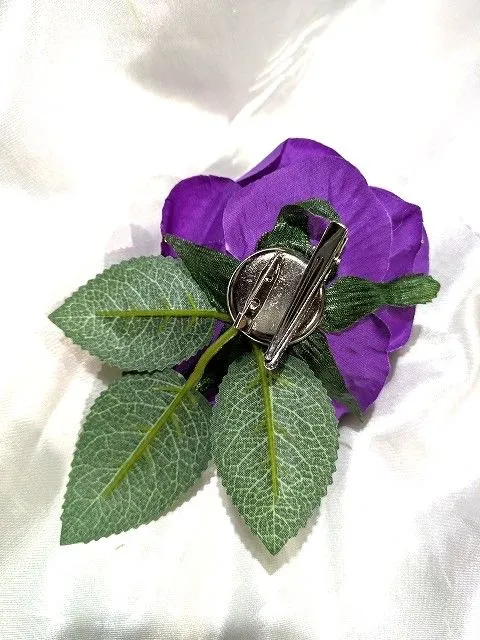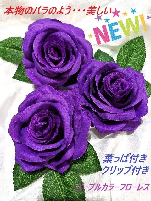 本物のバラのよう・・・美しい パープルカラーフローレス 葉っぱ付き・クリップ付き