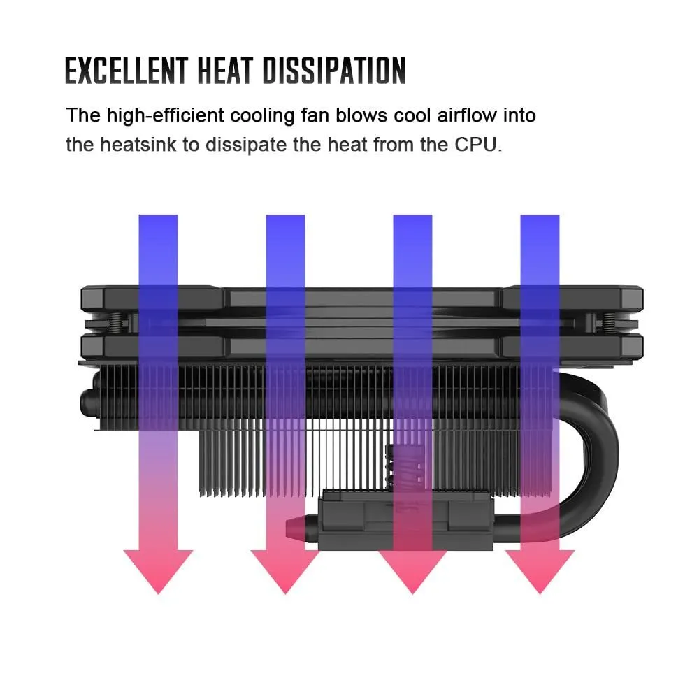 【優れた放熱】薄型CPUクーラーには、5本のヒートパイプと120mm PWMファンが付属し、CPUからの優れた熱伝導を保証します