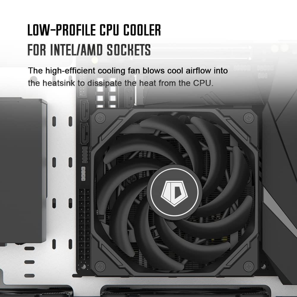 ID-COOLING IS-55 BLACK クーラー ロープロファイル 高さ57mm CPUエアクーラー 5ヒートパイプ 120x120x15mm スリムファン CPUファン Intel LGA1700/115X/1200用 AMD AM4/AM5 デスクトップ用
