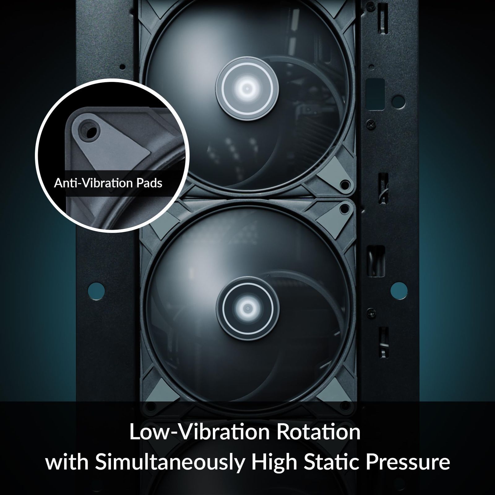 ・直進性のあるエアフローと高い静圧性能により、ラジエーター/ヒートシンク/PCケースなど、オールマイティにパフォーマンスを発揮