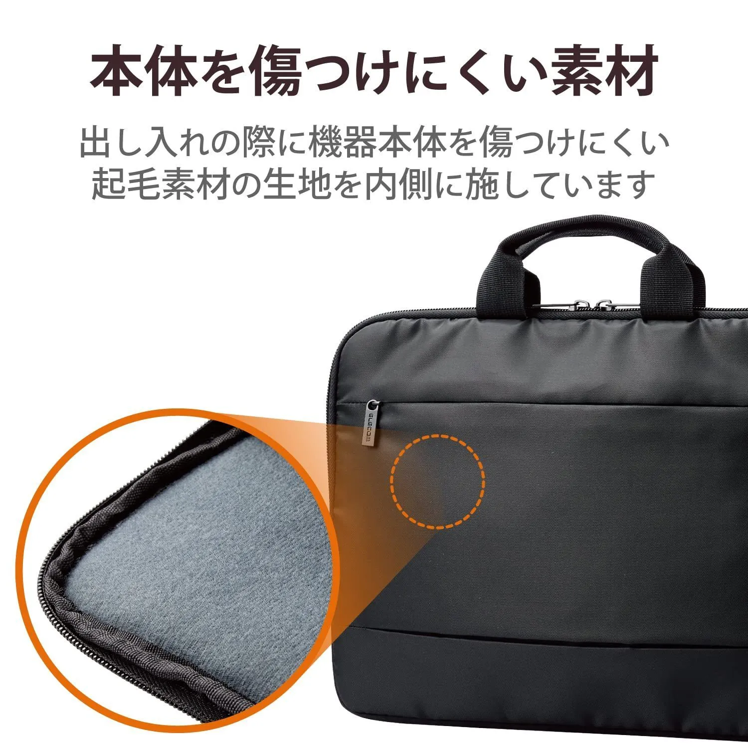 ■ケース内側には機器本体を傷つけにくい起毛素材を使用しています。