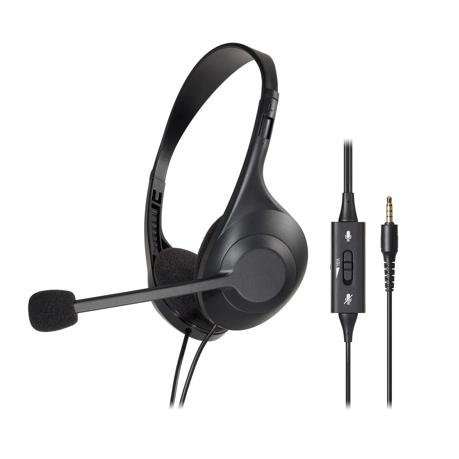 オーディオテクニカ ATH-102COM ヘッドセット 有線 ステレオ 3.5mm接続 ノイズキャンセリング マイク付き ヘッドホン 軽量 ソフトイヤーパッド 手元コントローラー 抗菌・消臭加工 web会議 テレワーク windows mac Chrom