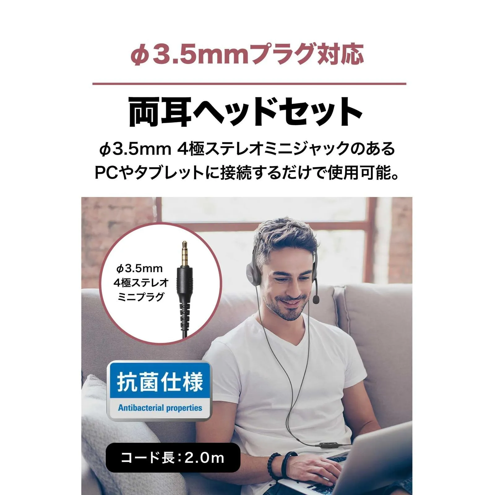 ◆使いやすく、蒸れにくい、クリアに話せるφ3.5mmプラグの両耳ヘッドセット