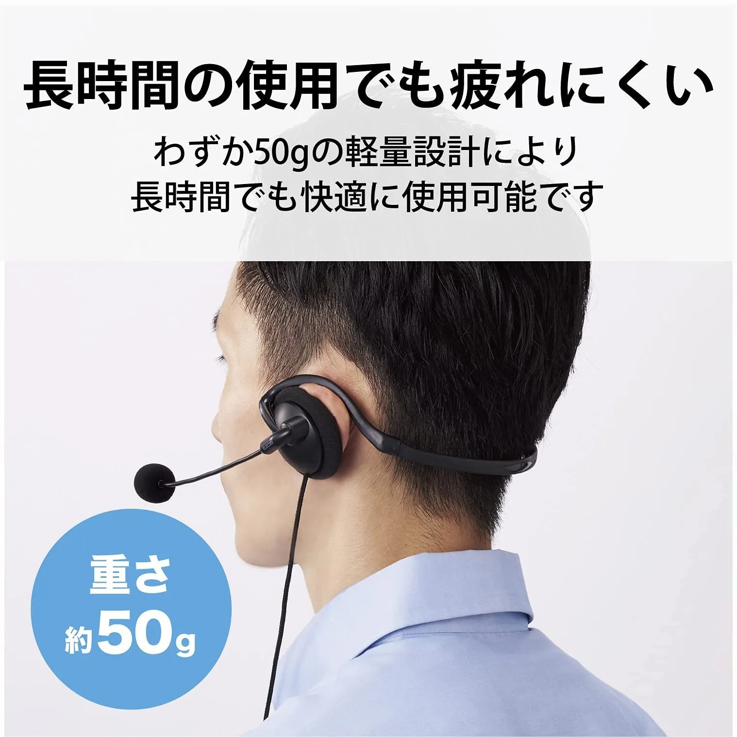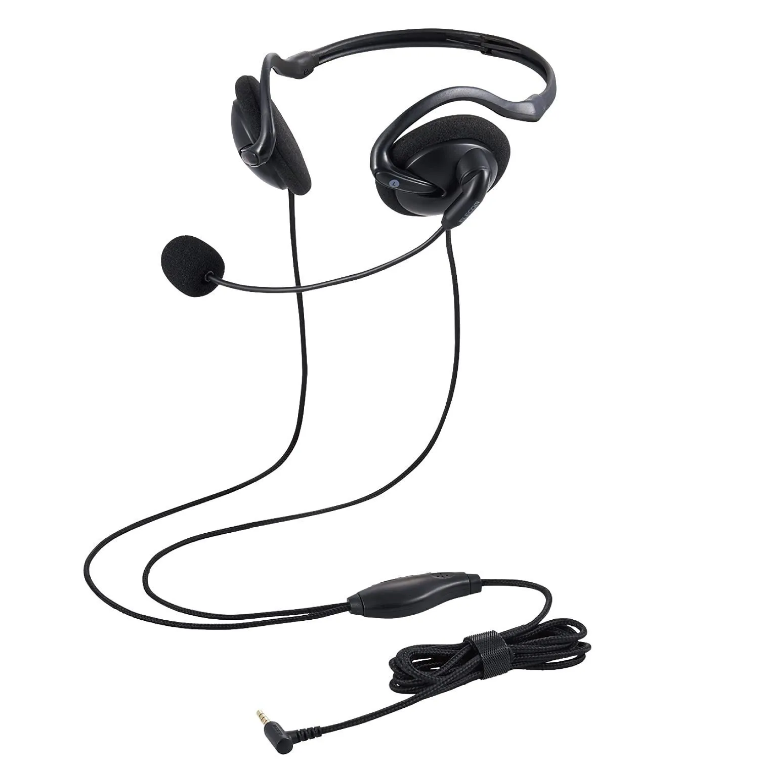 【迅速発送】エレコム ヘッドセット 有線 ネックバンド 折りたたみ式 3.5mm接続 4極 変換ケーブル付 マイク 両耳 リモートワーク ブラック HS-NB06TBK