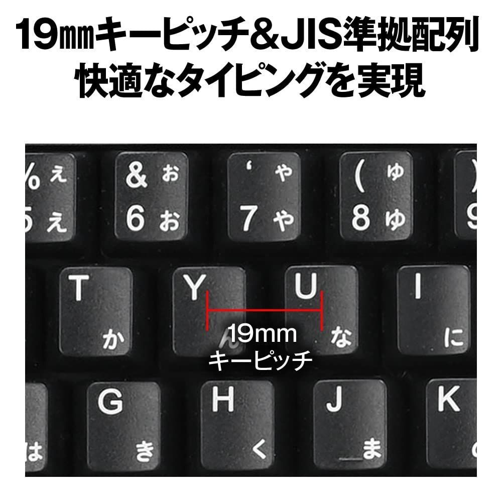 【主な付属品】取扱説明書、単3形乾電池×1(※動作確認用) カーブデザインを採用した疲れにくいキーボード スペースキー付近の面積が広く、親指への負担が軽減されるとともに親指の位置の自由度も高くなるため、快適なタイピングが可能です。