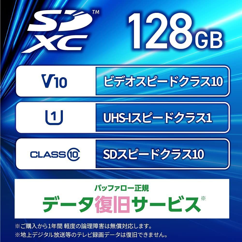バッファロー SDカード 128GB 100MB/s UHS-1 スピードクラス1 VideoSpeedClass10 IPX7 Full HD データ復旧サービス対応 RSDC-128U11HA/N