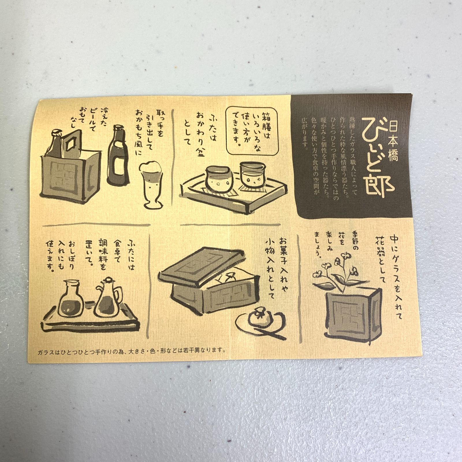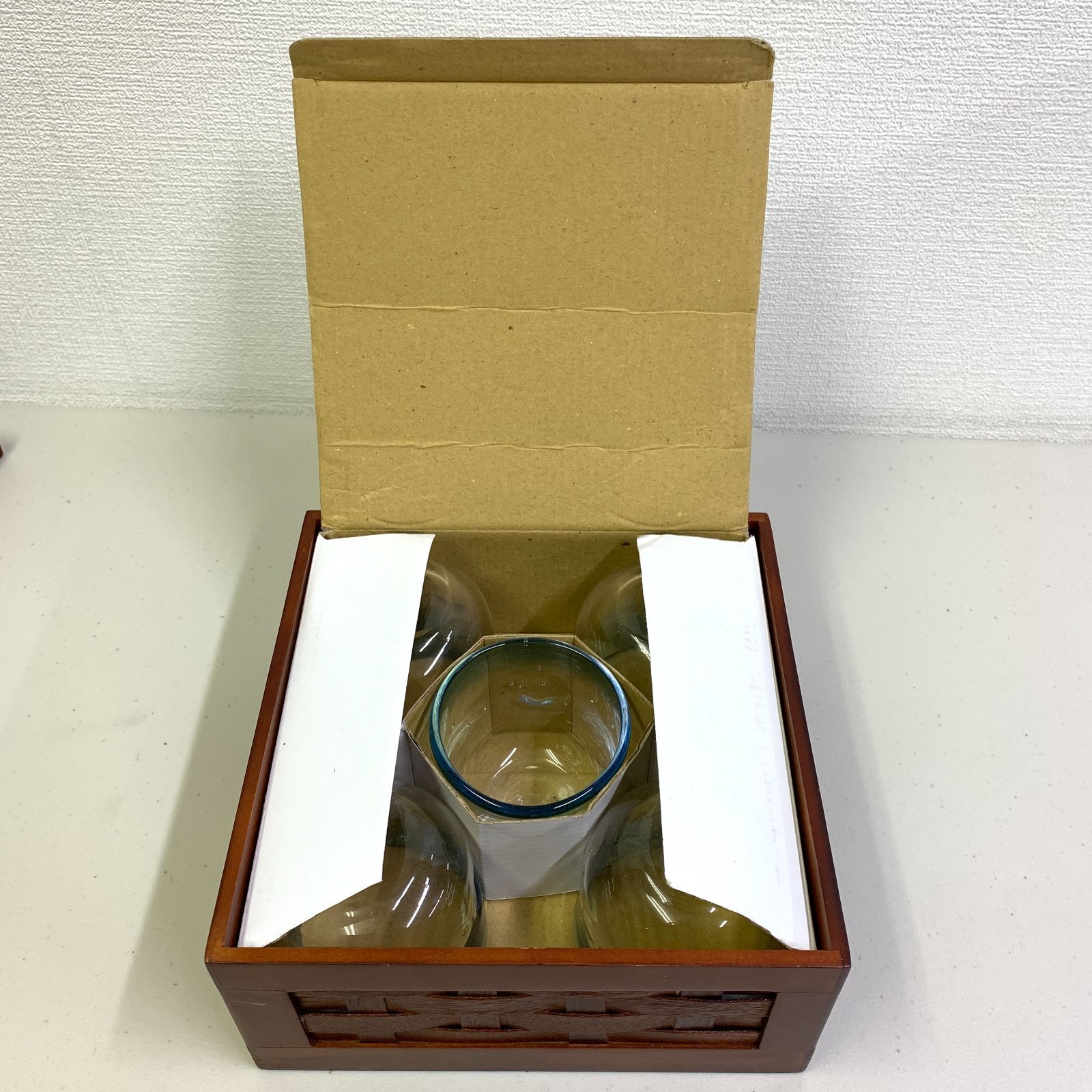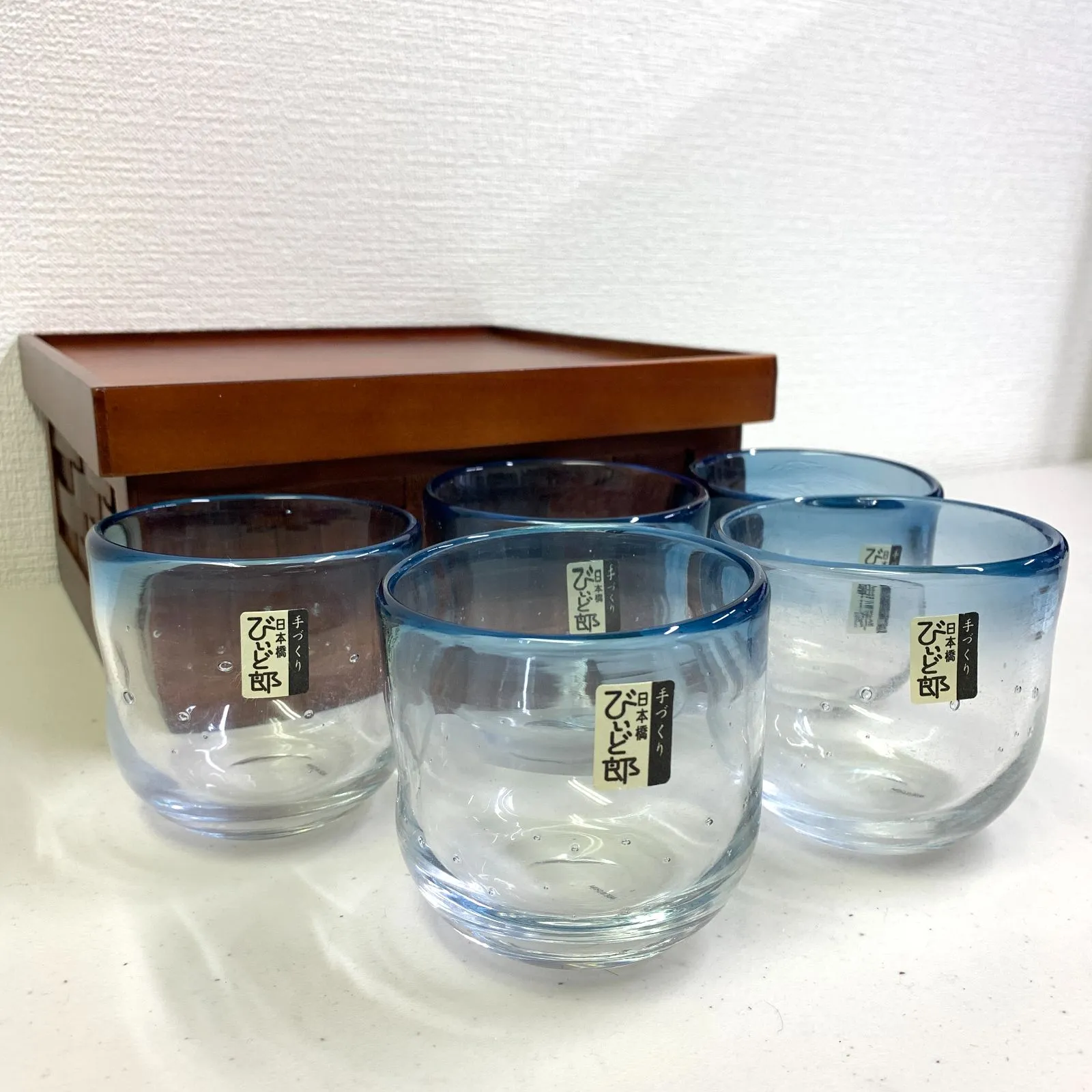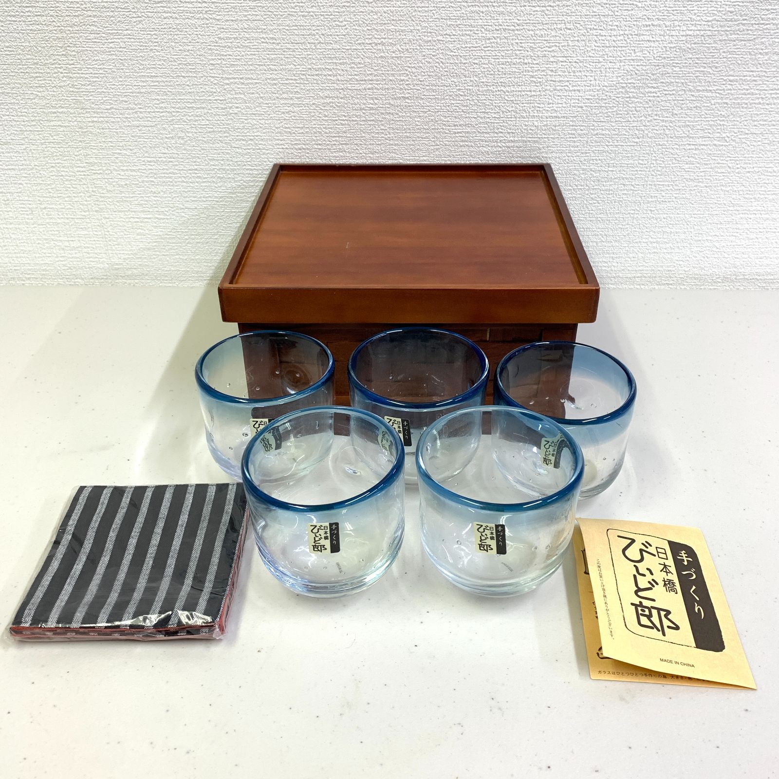 新品 未使用 びいど郎 グラス 5個 セット 木箱付き 日本橋 手づくり ガラス 食器