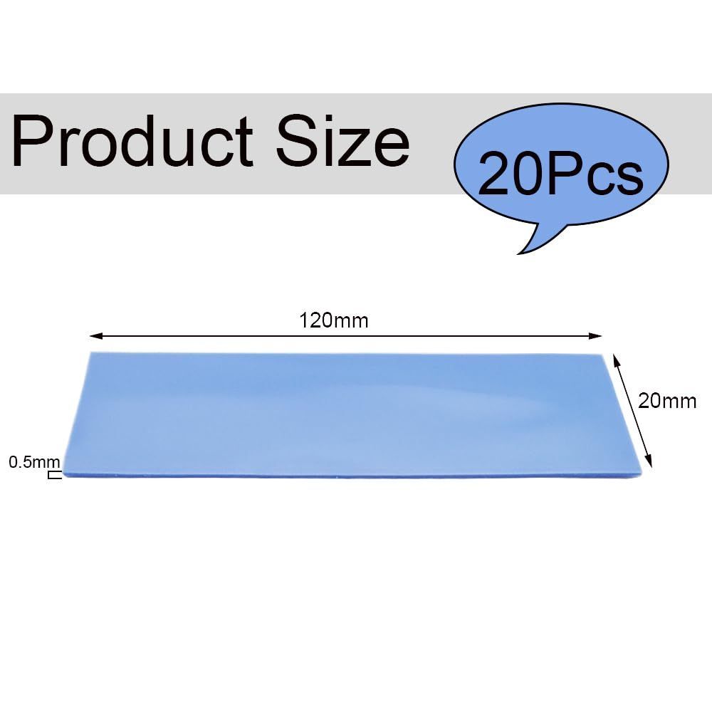 ?パッケージ:サーマルパッド、カラー:ブルー、サイズ:120x20x0.5mm、数量:20個、さまざまなニーズを満たすのに十分な量。高い熱伝導率。
