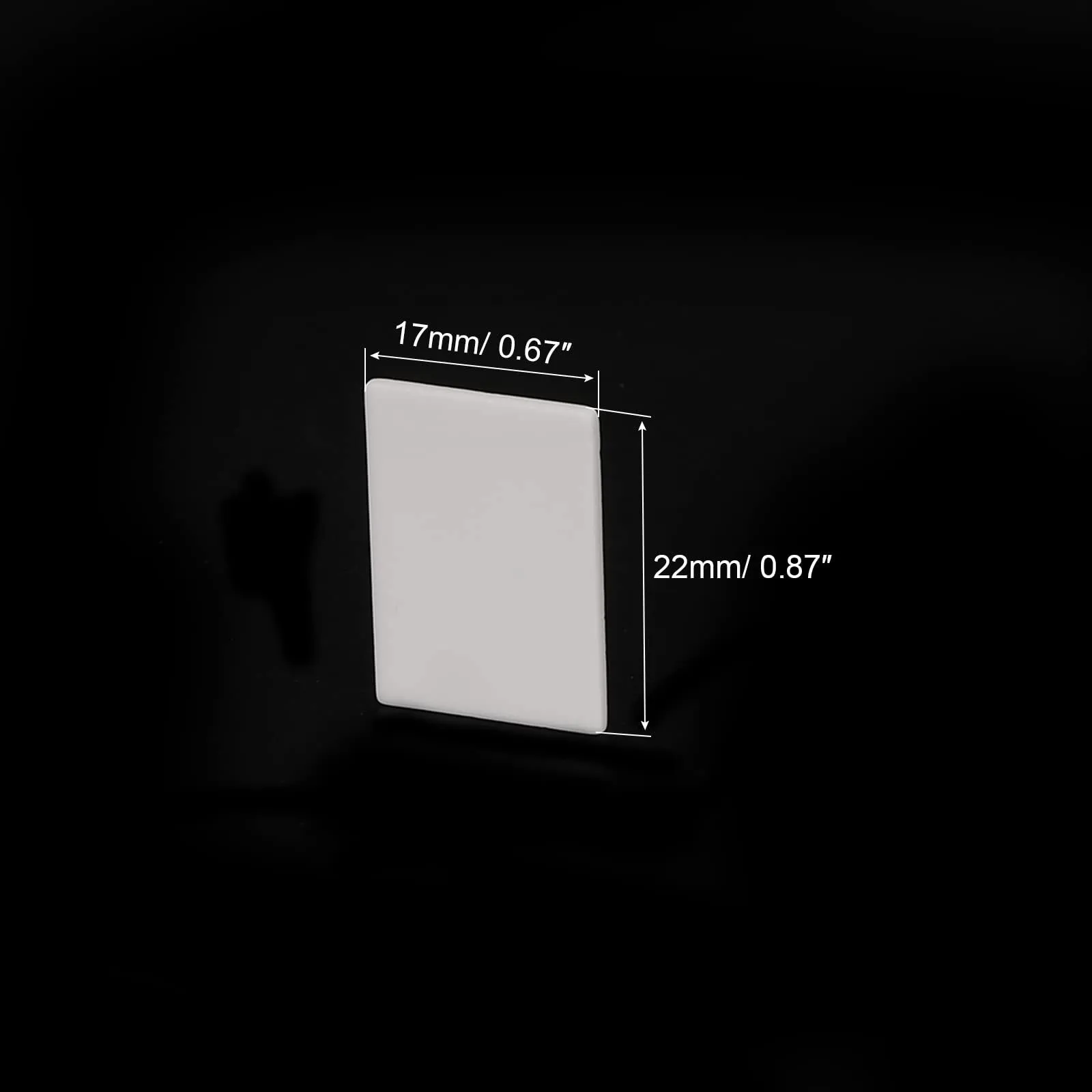 アルミナセラミックシートのサイズは次の通りです:長さ22mm/0.87、幅17mm/0.67、厚さ0.65mm/0.03