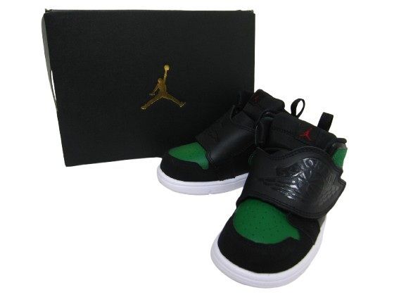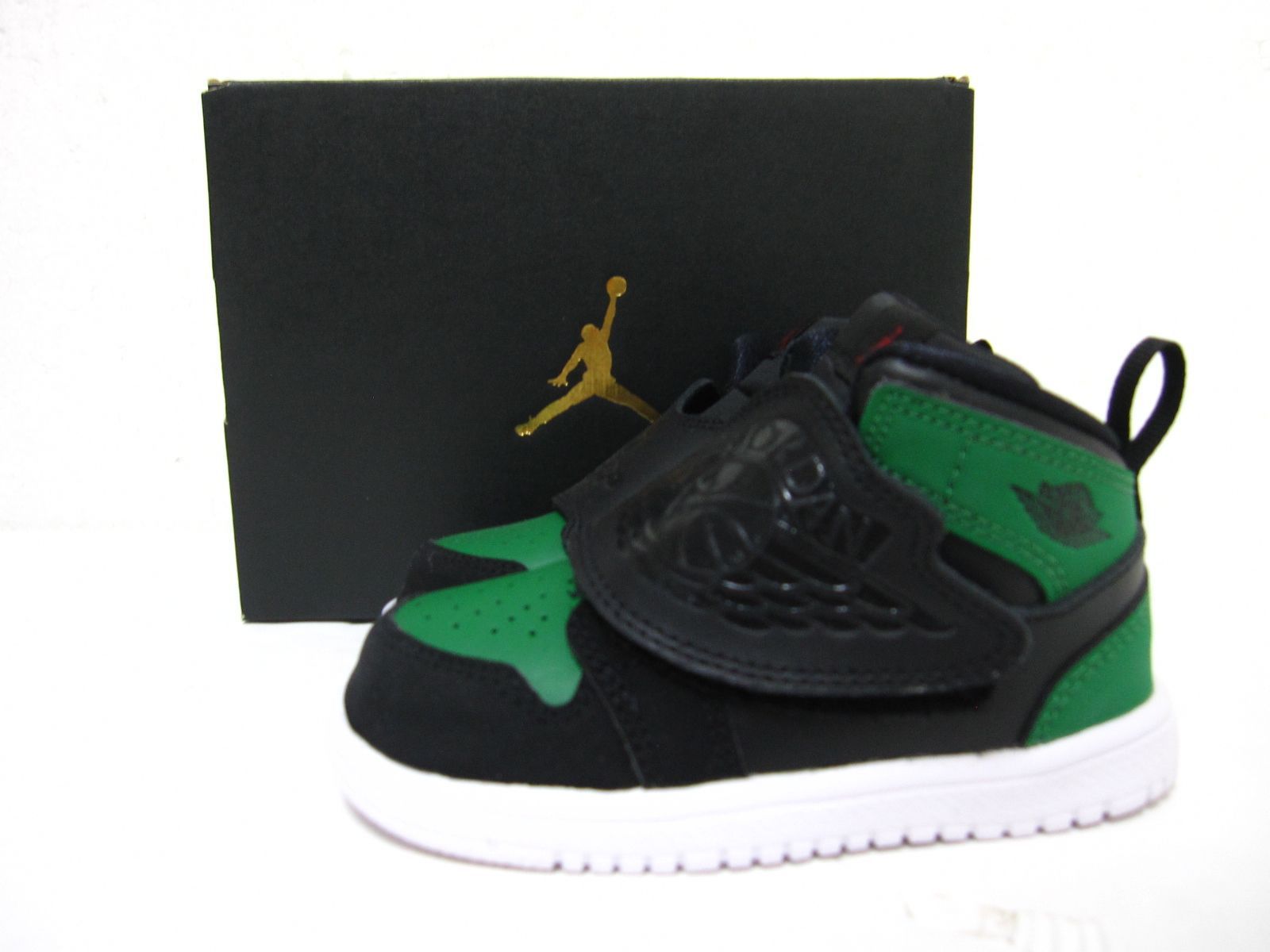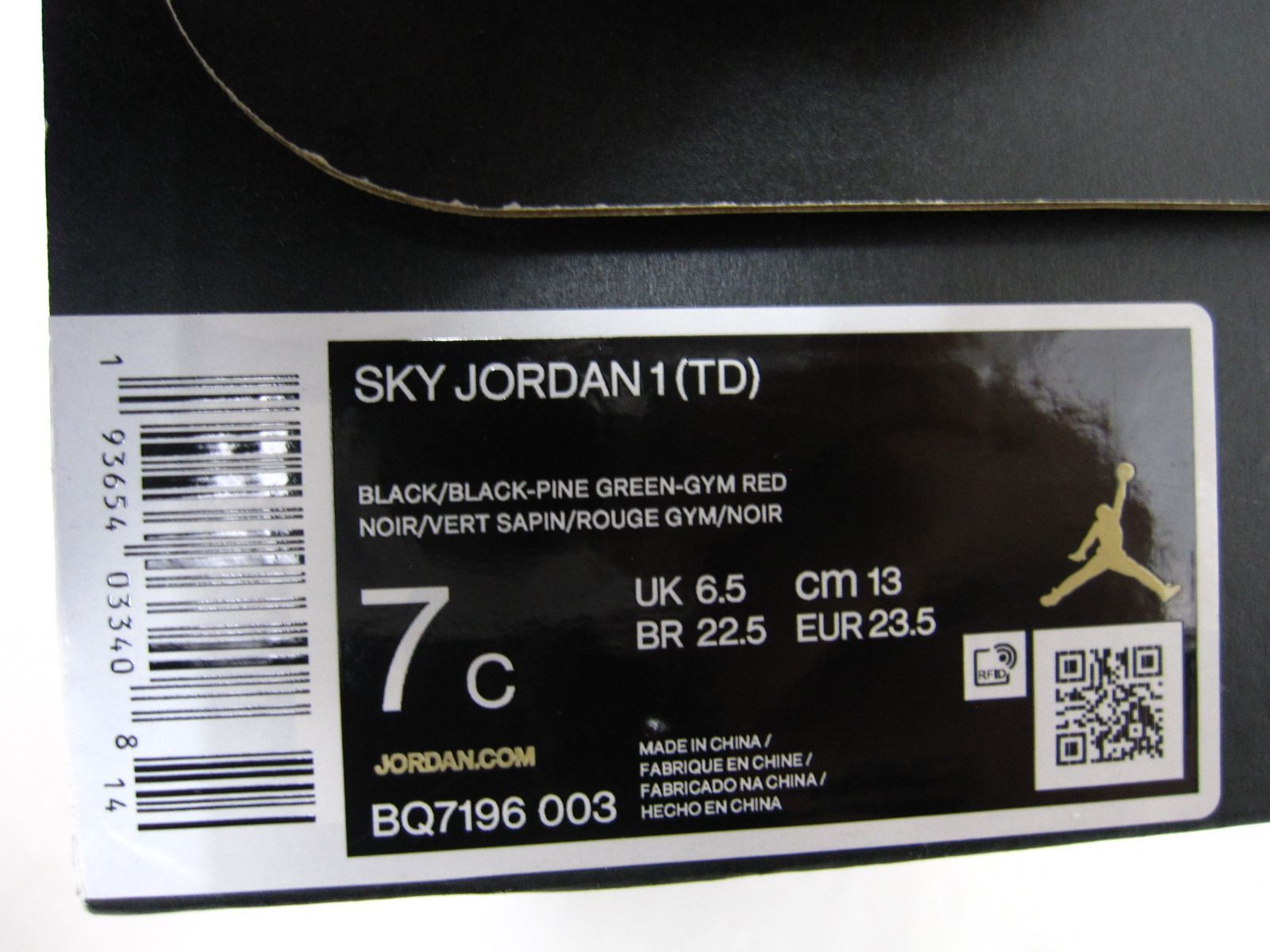 【新品未使用】NIKE SKY JORDAN1(TD) ナイキ ジョーダン1 BQ7197-003 ベビー キッズ US7 / UK6.5 / 13cm 黒緑 マジックテープ敷
