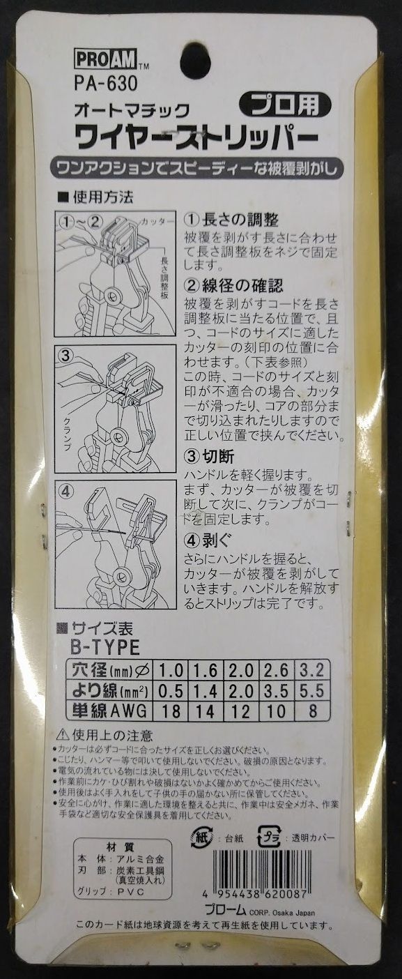 PROAM オートマチック ワイヤーストリッパー PA-630 1個