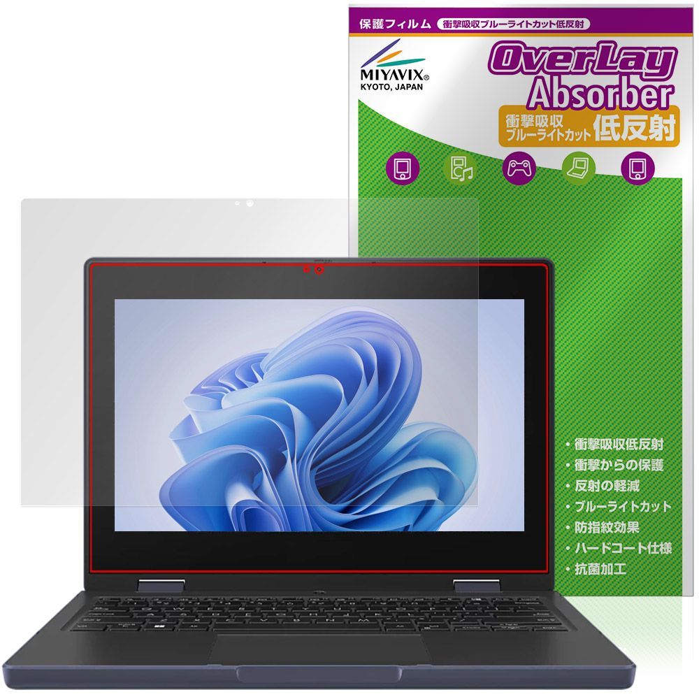 ASUS BR1104F 保護フィルム OverLay Absorber 低反射 for エイスース ノートパソコン 衝撃吸収 反射防止 ブルーライトカット 抗菌