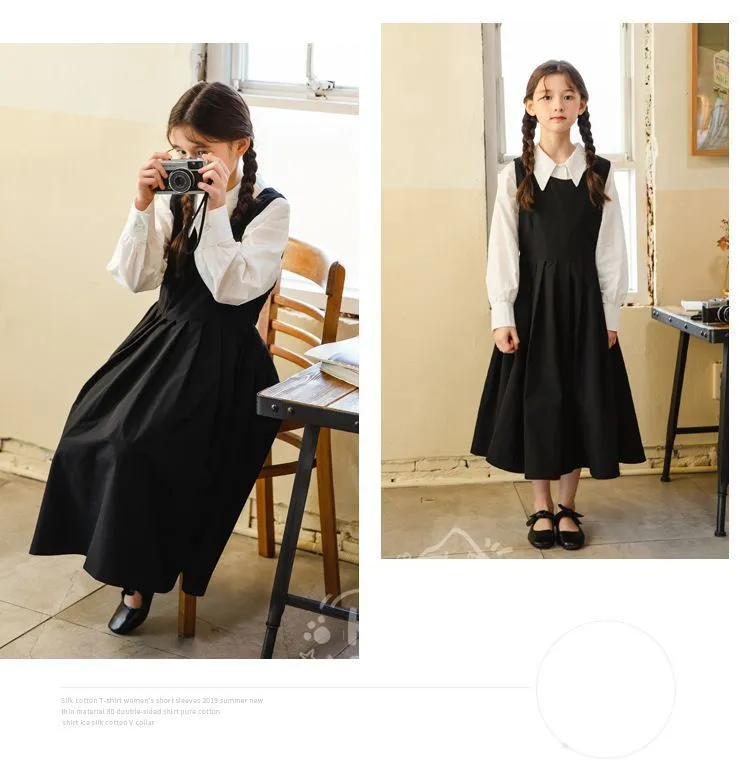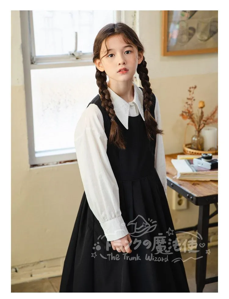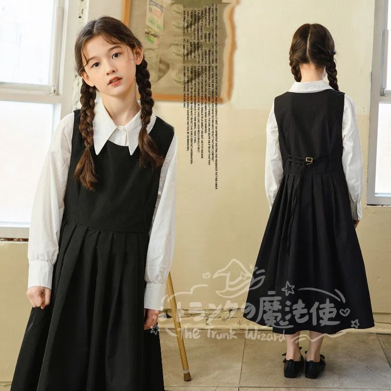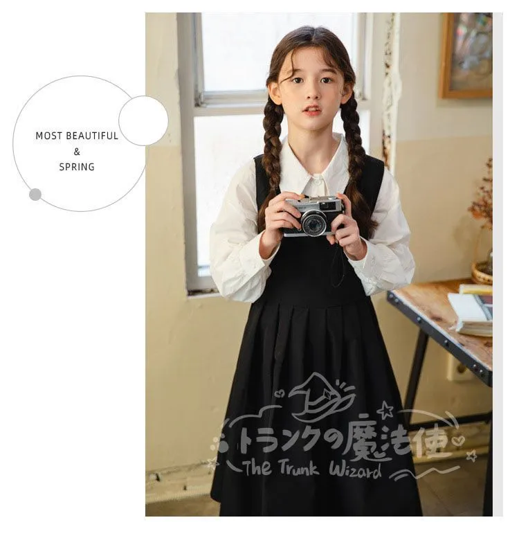特価★韓国子供服 セットアップ 白いシャツ+ストラップワンピ 女の子 フォーマル 卒園式 入学式 卒業式 小学校 お呼ばれ お食事会 春秋着 おしゃれ ナチュラル 通学 CTZ121P099