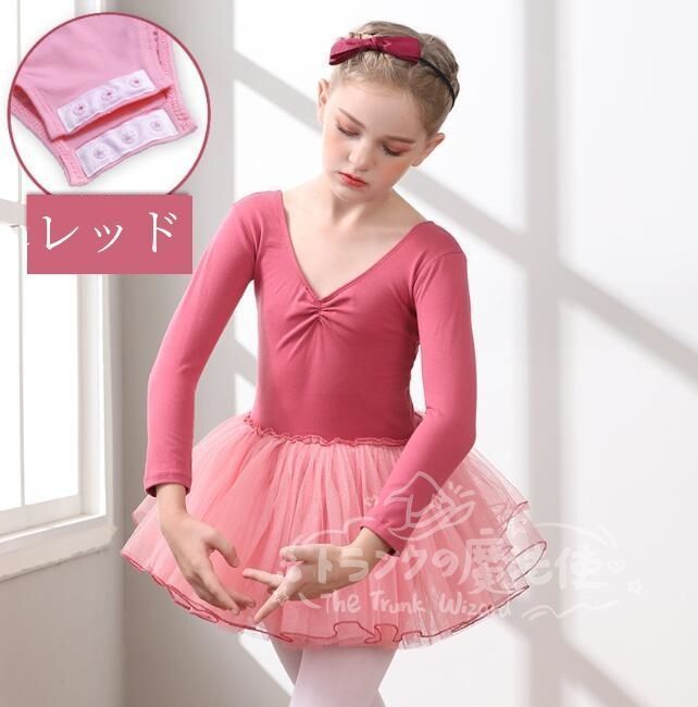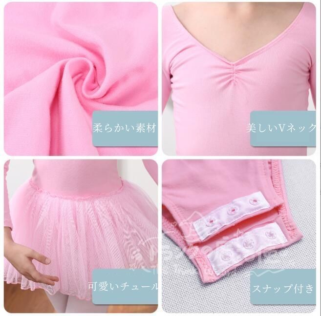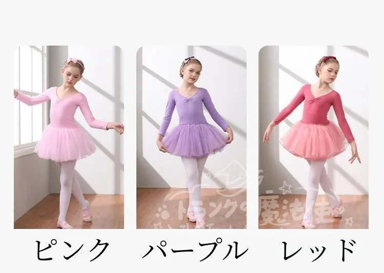 子供 バレエ レオタード 女の子 長袖 チュチュ キッズ ダンスワンピース スナップ付き スカート付き チュール ダンスウェア レッスン ユニフォーム衣装 練習用