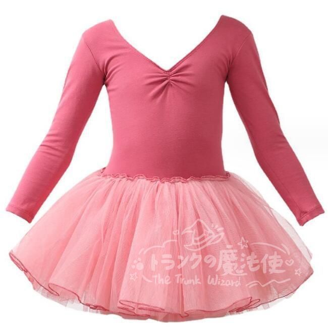 特価★子供 バレエ レオタード 女の子 長袖 チュチュ キッズ ダンスワンピース スナップ付き スカート付き チュール ダンスウェア レッスン ユニフォーム衣装 練習用 CTZ121P114