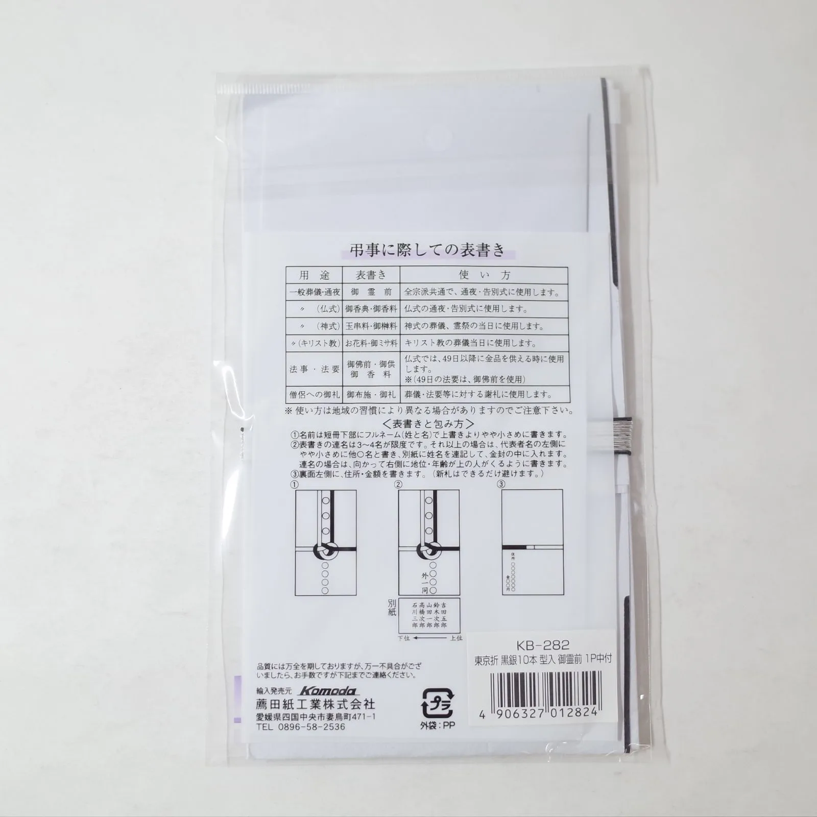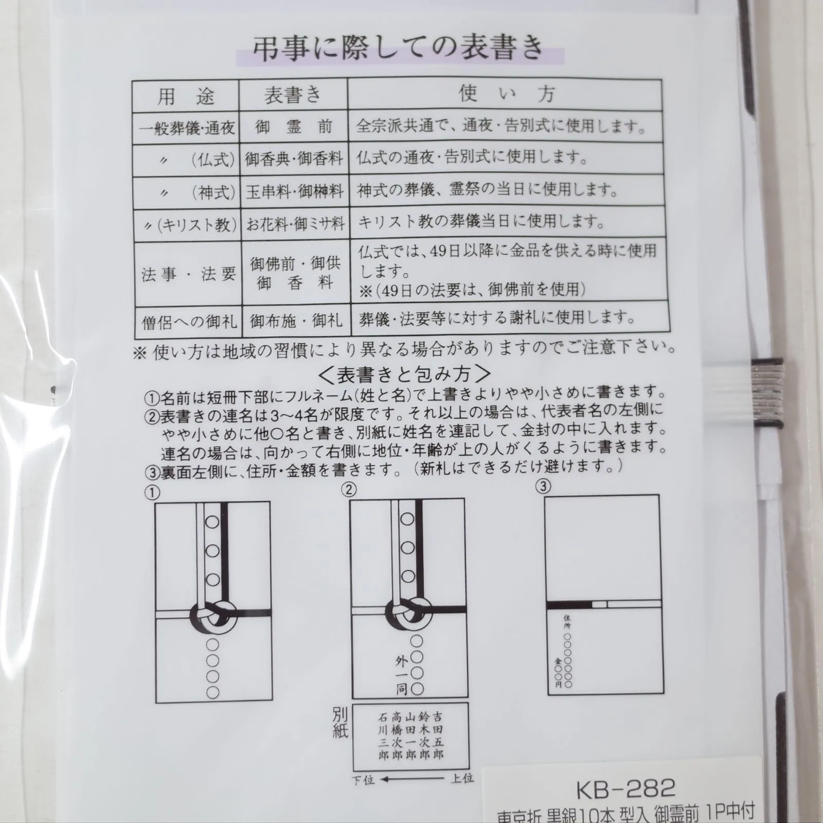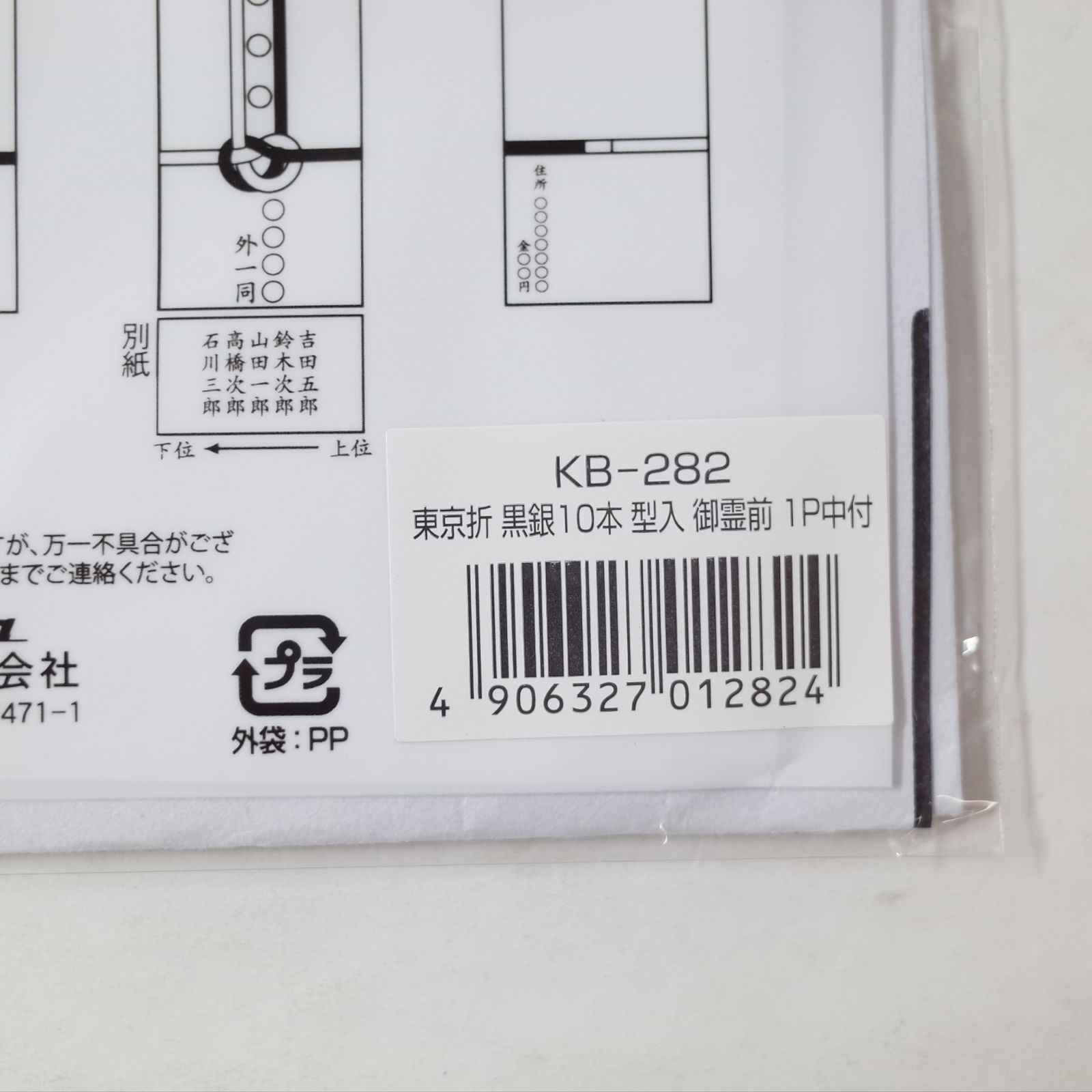 KB-282 東京折 黒銀10本 型入 御霊前 中袋付 1枚入 ×10P