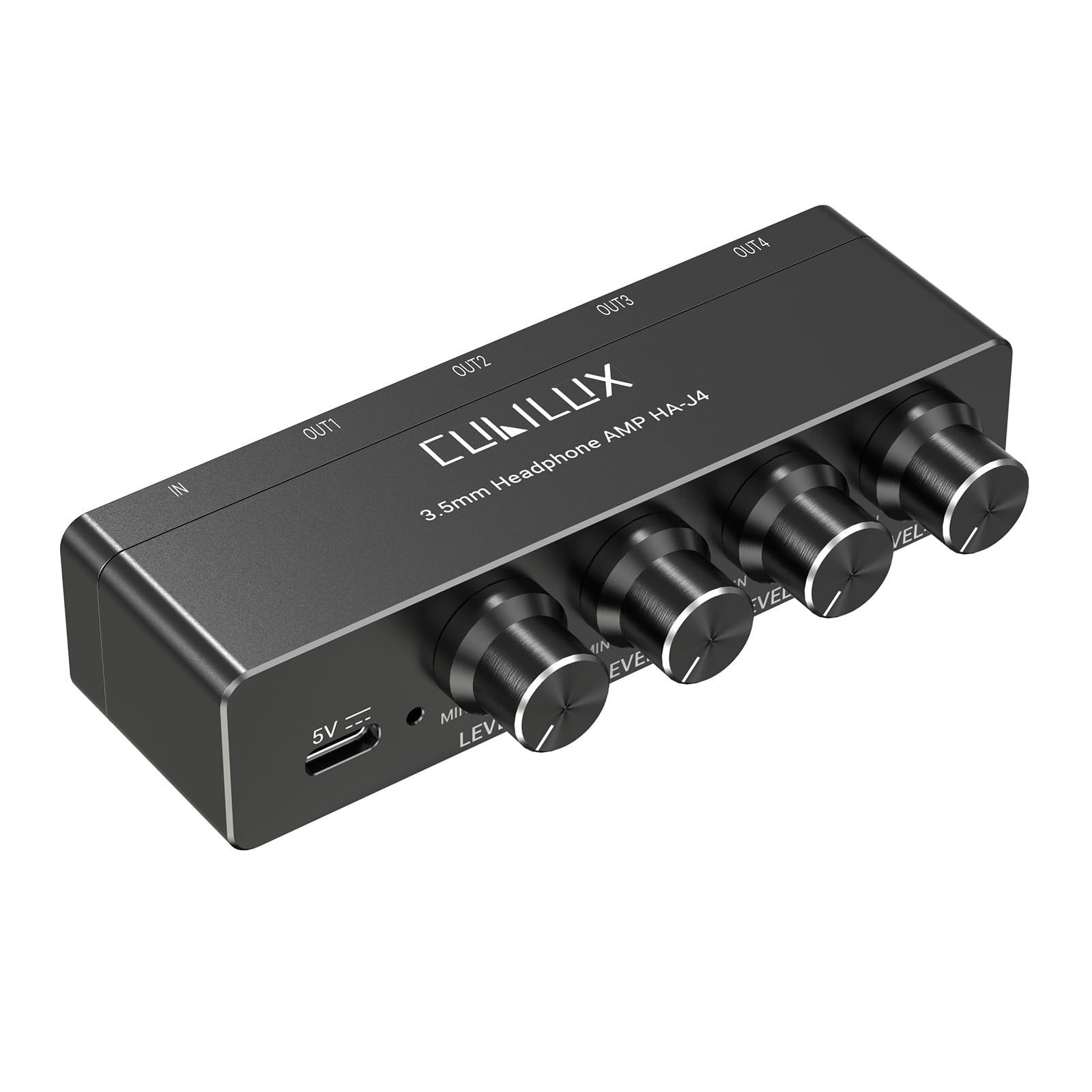 Cubilux 3.5mm イヤホン アンプ、4ウェイ ステレオ ヘッドホン アンプ、ミニ オーディオ アンプ、独立音量調整