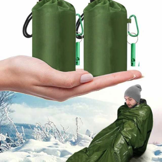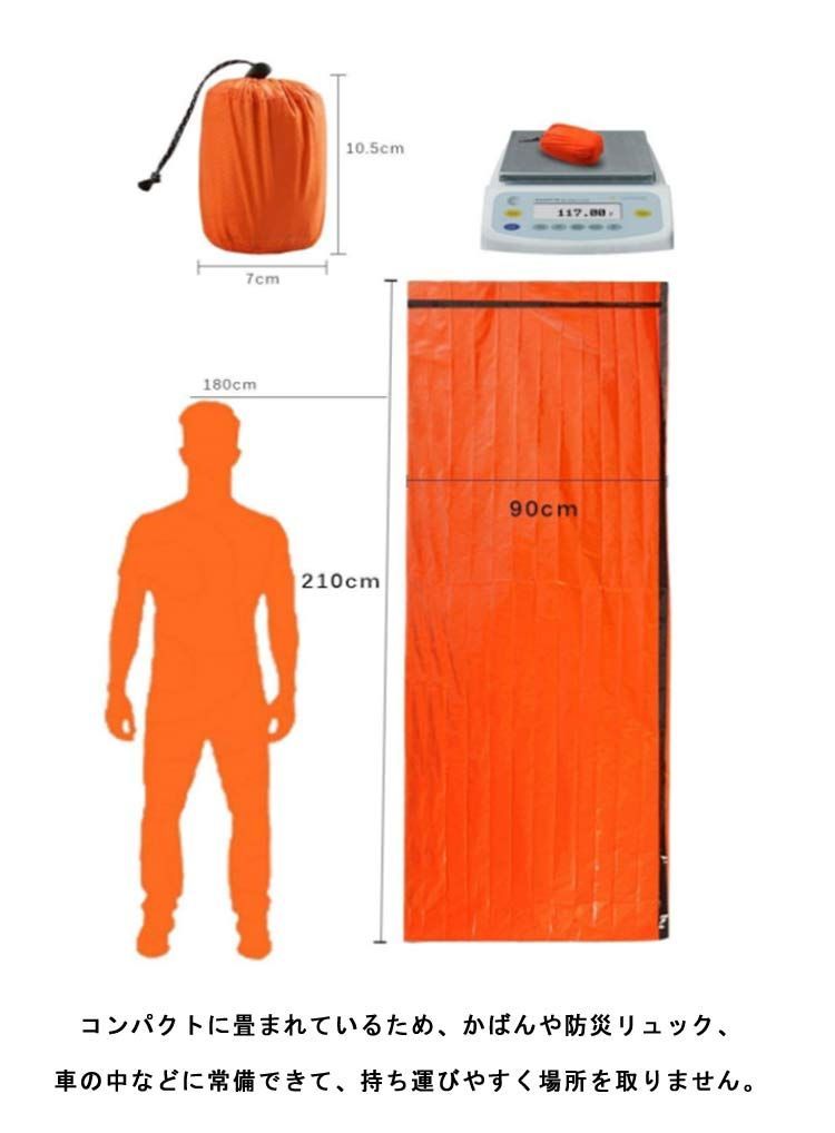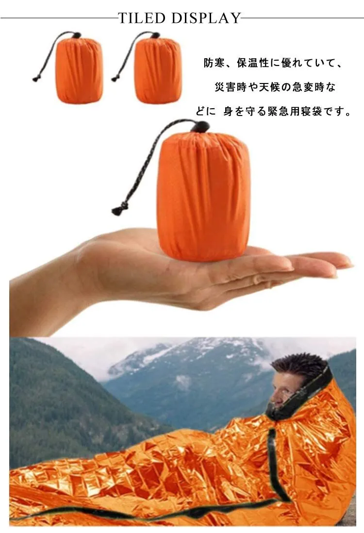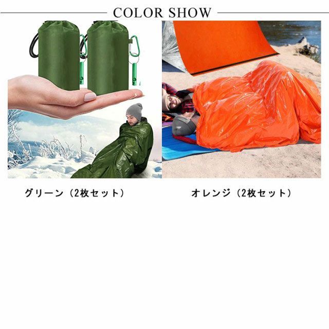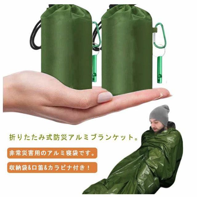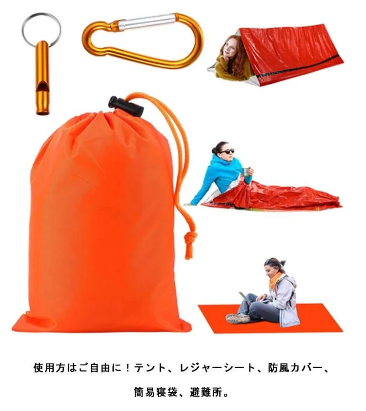 2枚セット 非常時用寝袋 210×90cm アルミブランケット アルミシート 繰り返し使用可 エマージェンシー用品 アウトドア 防災 避難 緊急 登山 車中泊 地震 津波 防寒 収納袋付き 口笛 カラ#amyz4342