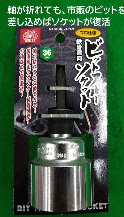 高負荷によって軸が折れても、市販のビットを差し込めばソケットが復活します。