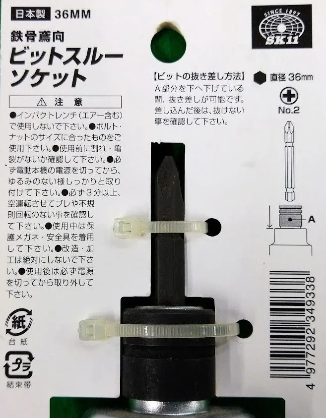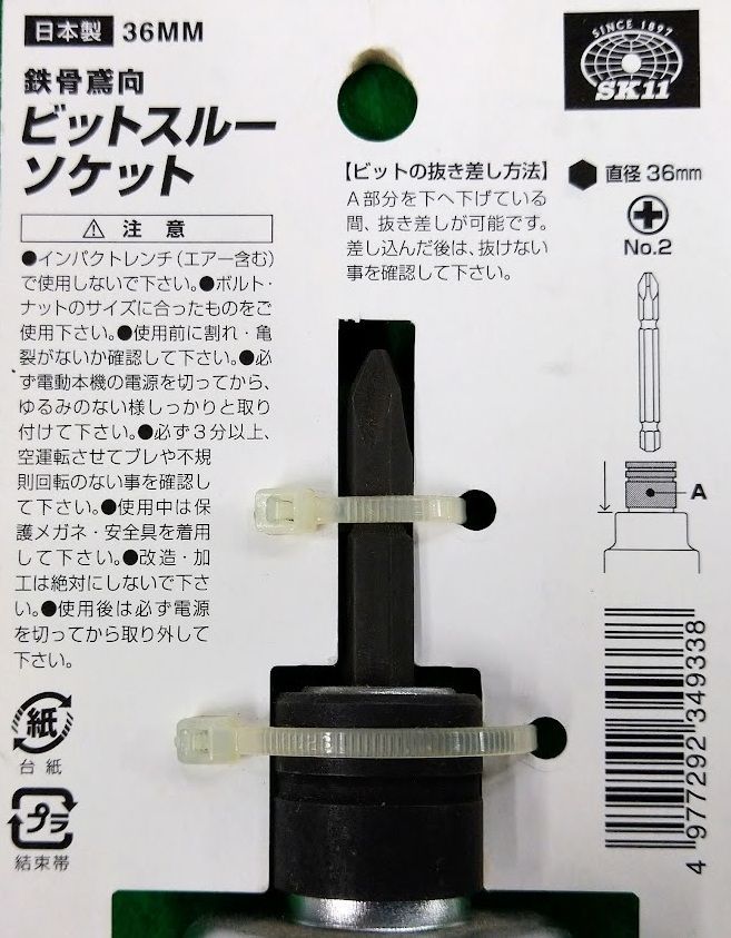 藤原産業 SK11 鉄骨鳶向ビットスルーソケット 36MM
