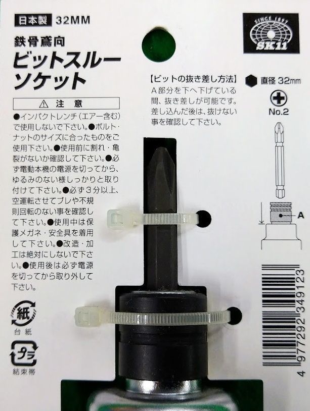 藤原産業 SK11 鉄骨鳶向ビットスルーソケット 32MM