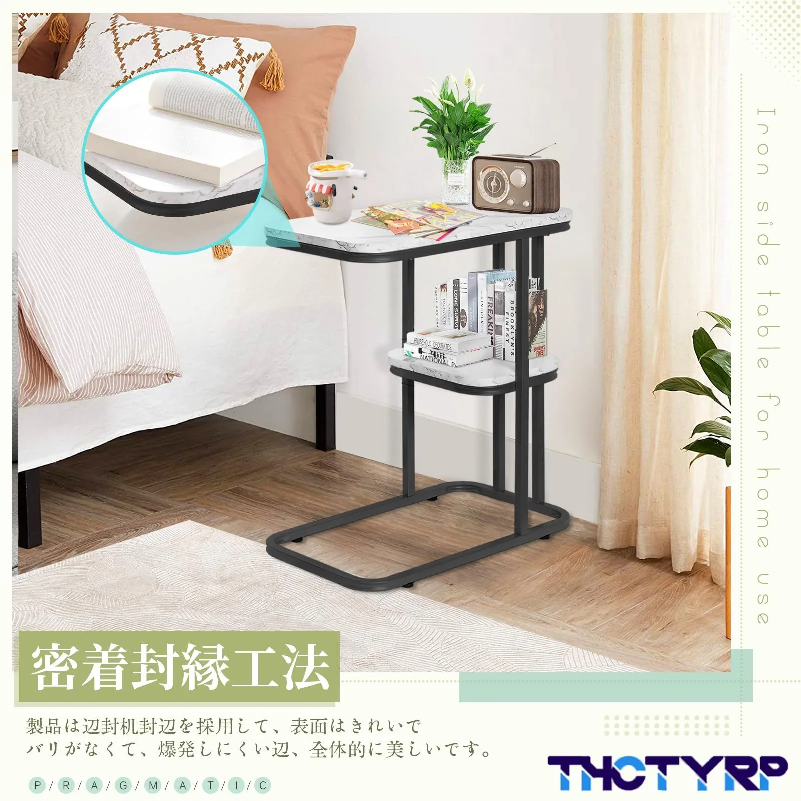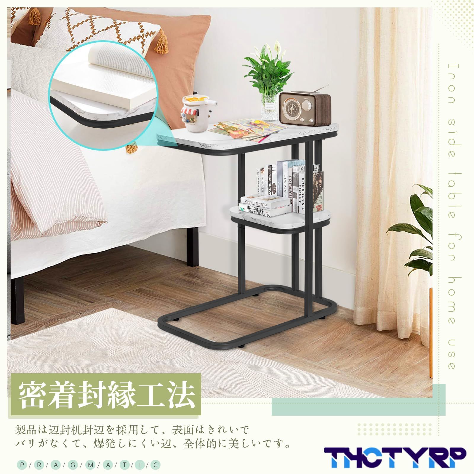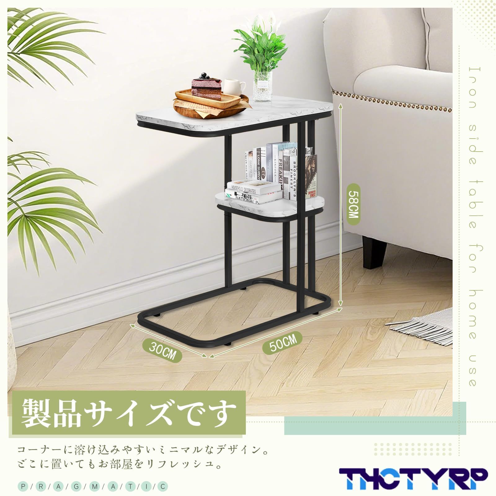 【在庫処分】【省スペースU型】ソファサイドテーブル ベッドサイドテーブル ナイトテーブル 大理石調 スリム 幅50cm x 奥行30cm THCTYRP x 高さ58cm 隙間収納 組立簡単 コの字型ラック 収納棚付き リビング 寝室用 おしゃれ(ホワイト+ブ
