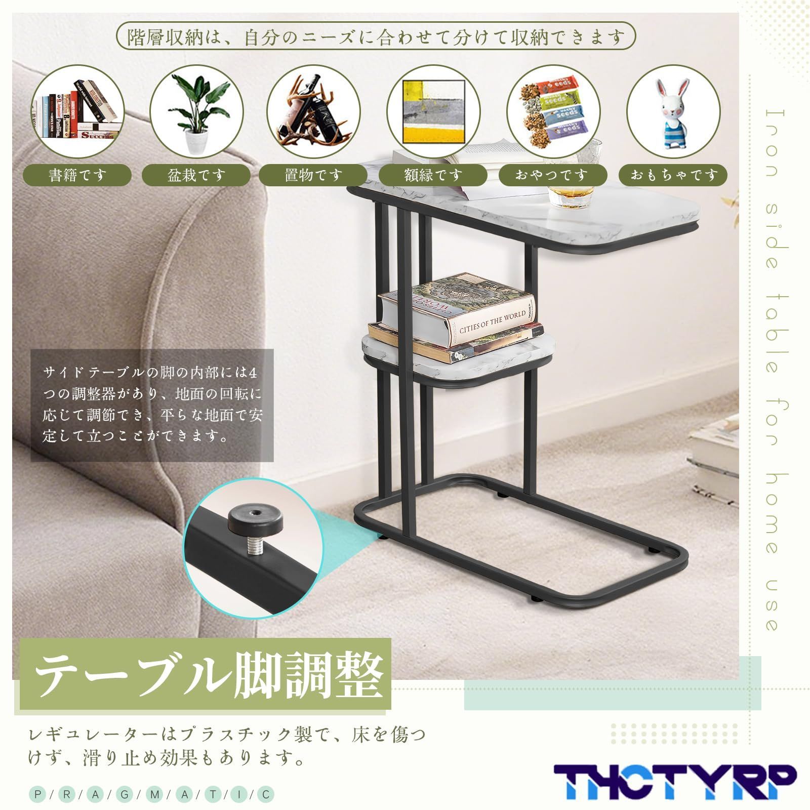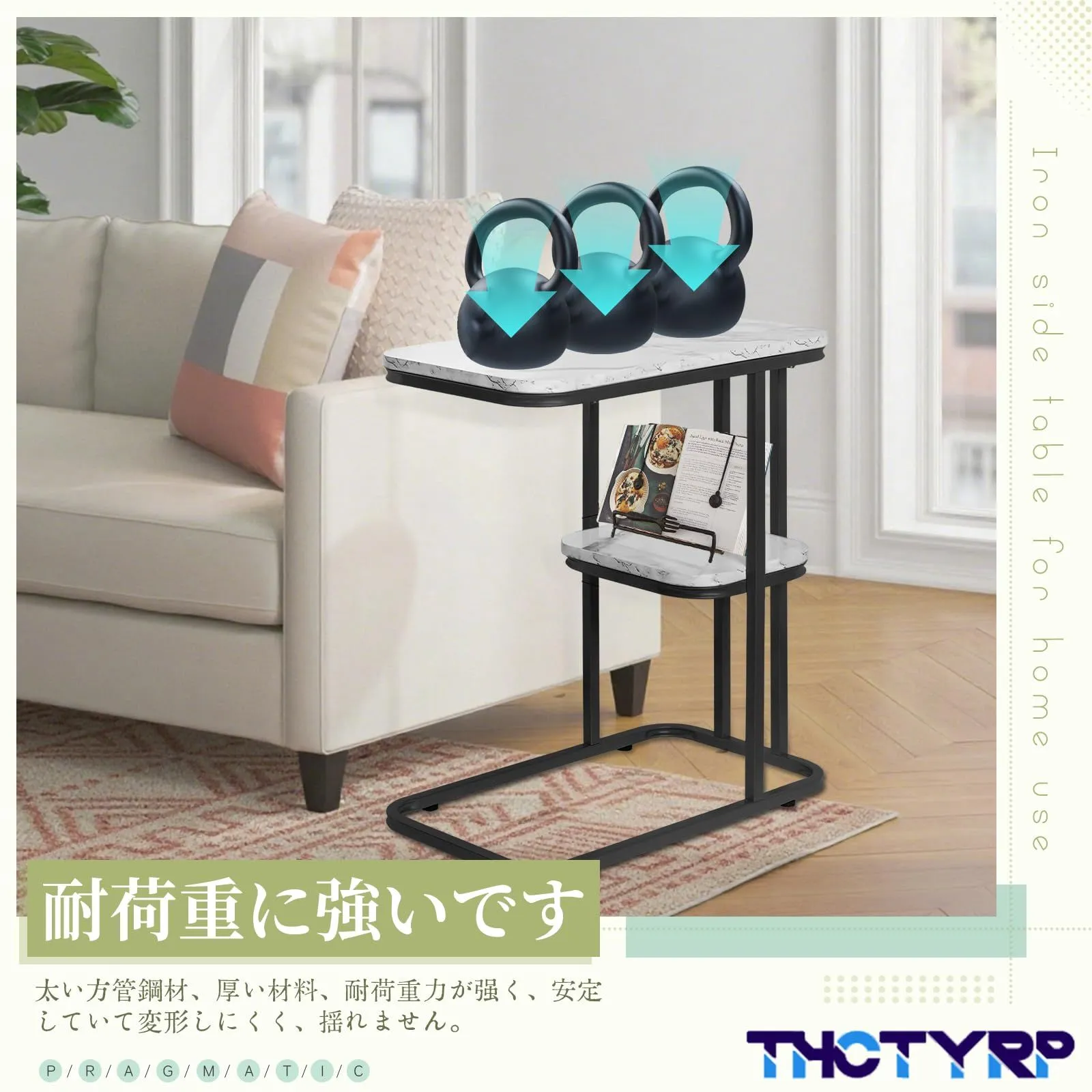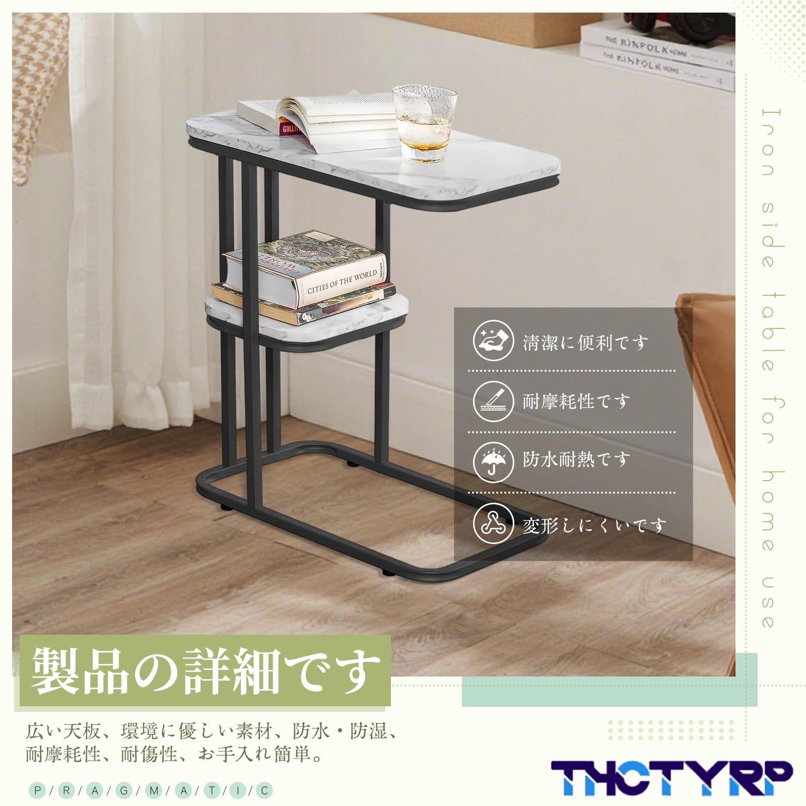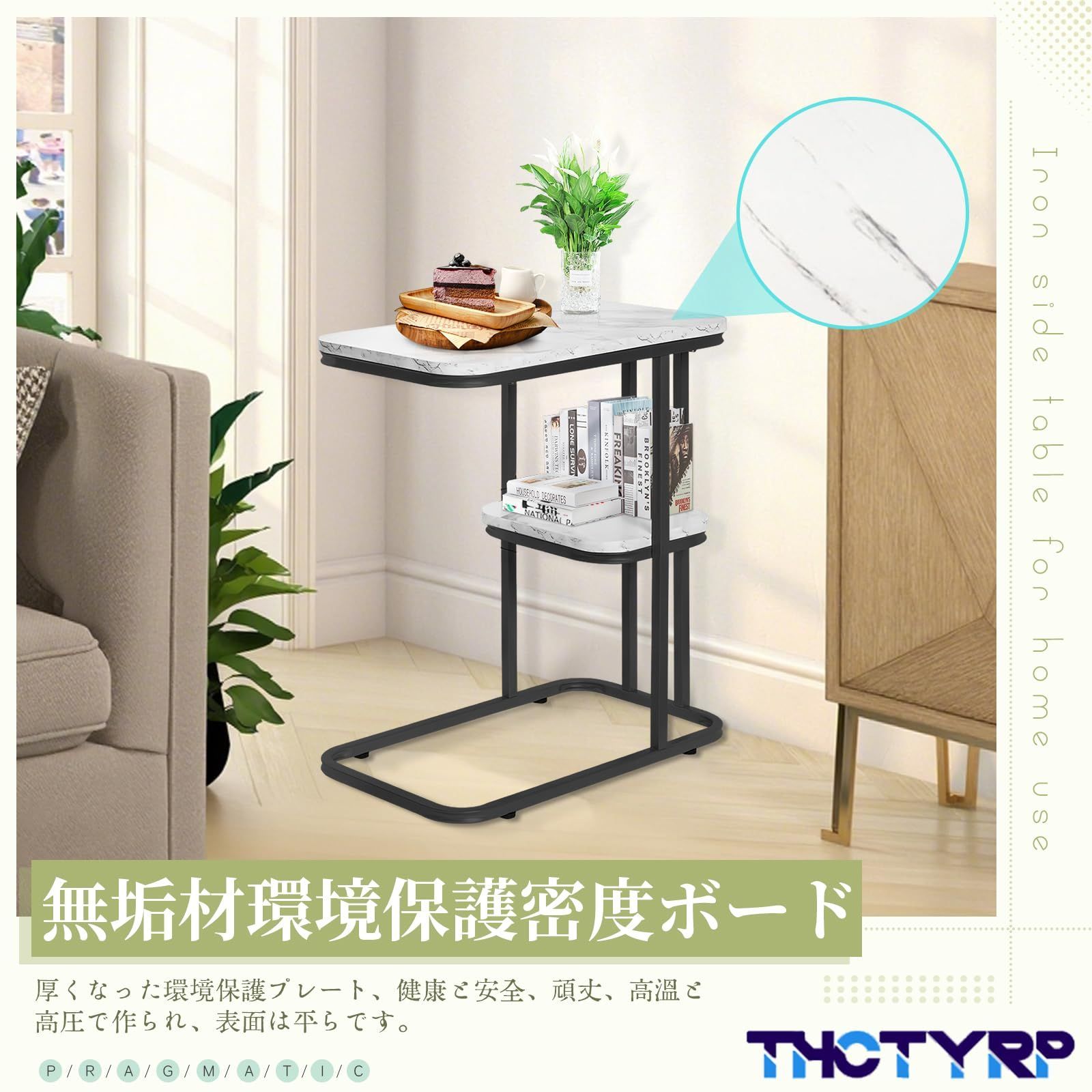 【在庫処分】【省スペースU型】ソファサイドテーブル ベッドサイドテーブル ナイトテーブル 大理石調 スリム 幅50cm x 奥行30cm THCTYRP x 高さ58cm 隙間収納 組立簡単 コの字型ラック 収納棚付き リビング 寝室用 おしゃれ(ホワイト+ブ