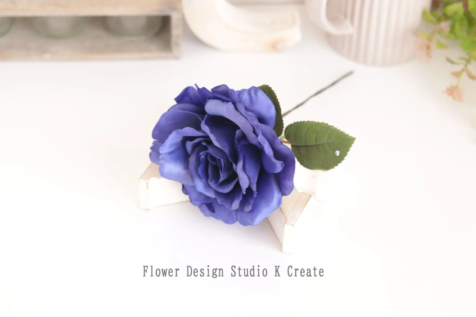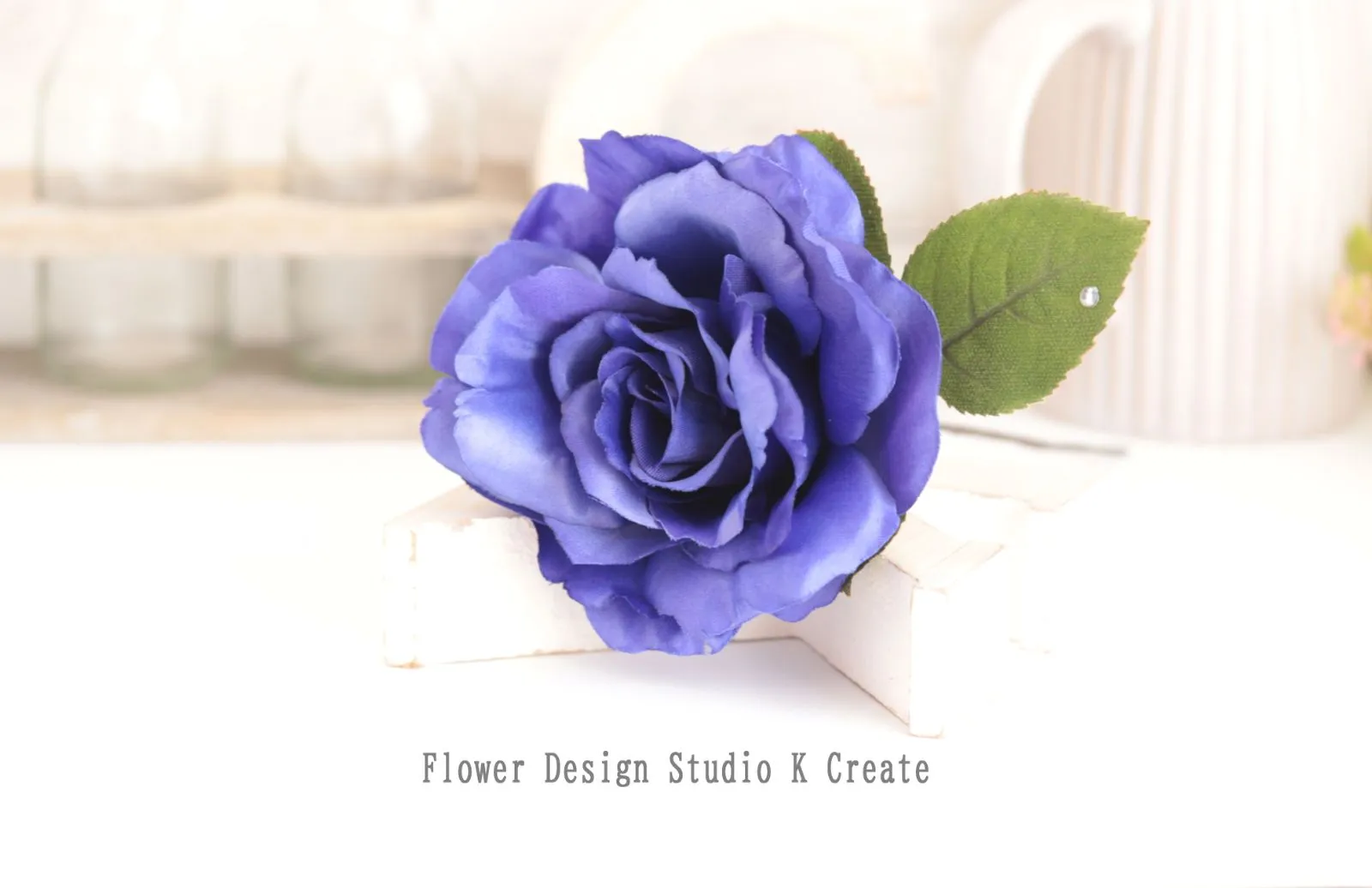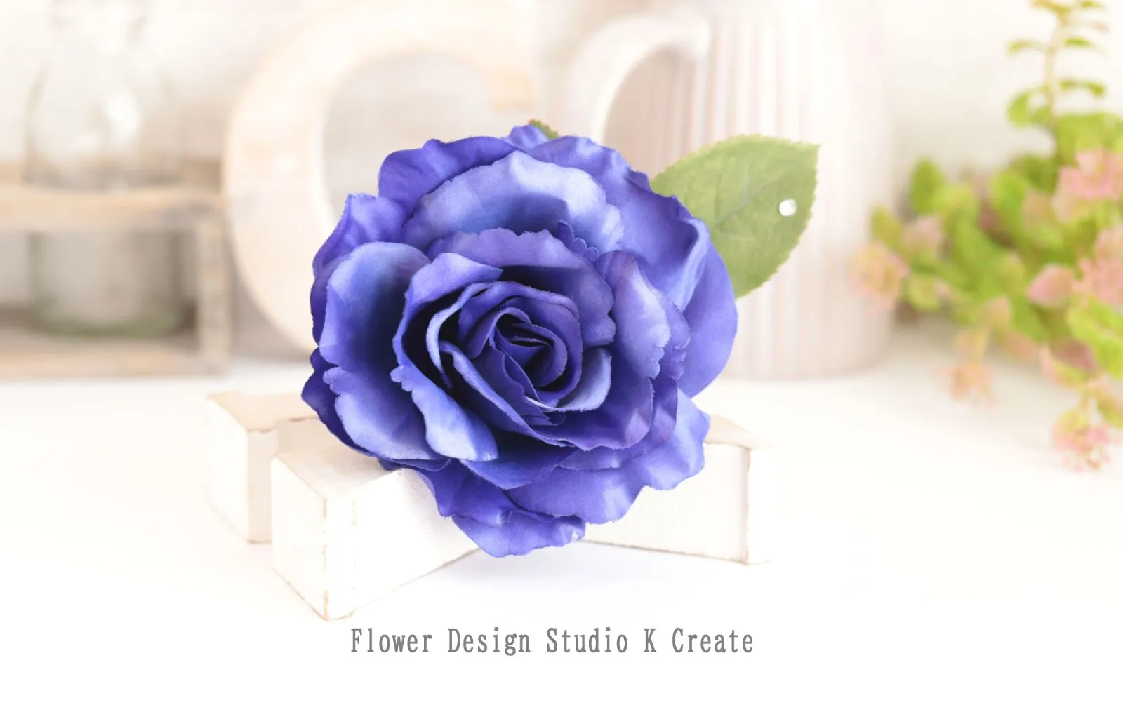 青い薔薇と葉っぱの髪飾りです。