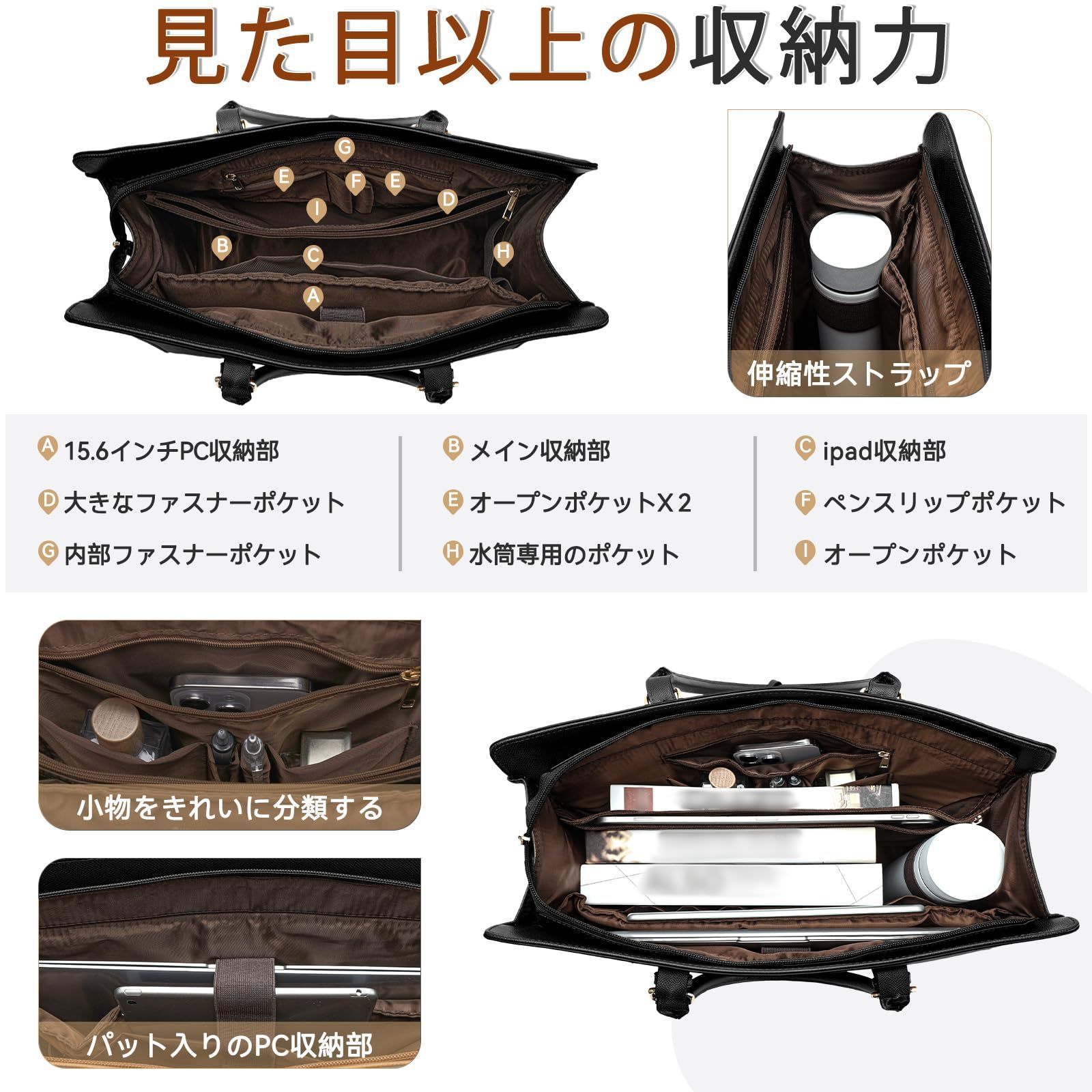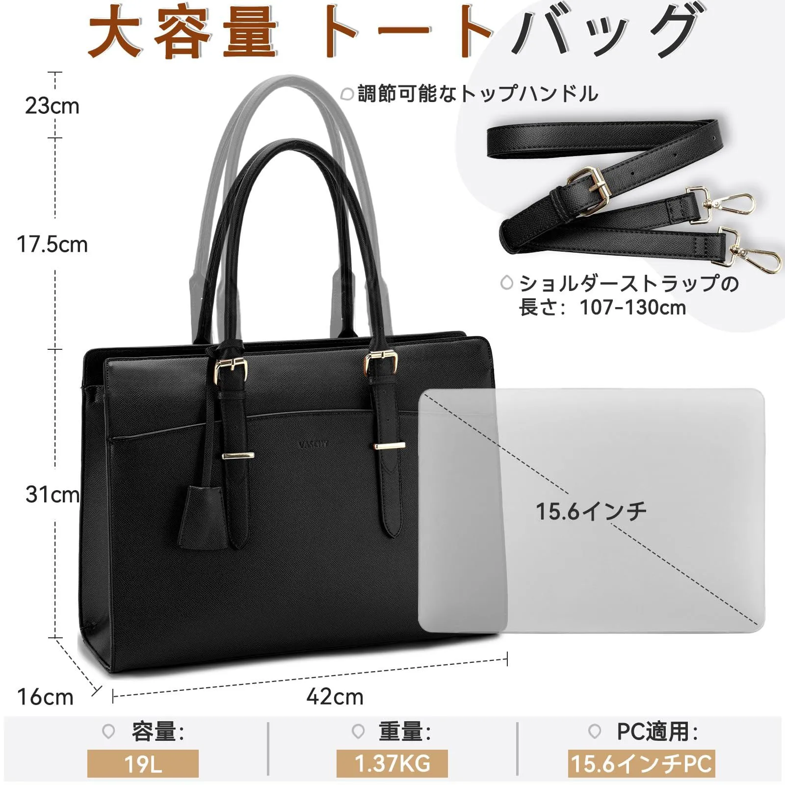 VASCHY トートバッグ レディース ビジネスバッグ 大容量 15.6インチPCバッグ ハンドバッグ 撥水加工 自立 肩掛けバッグ ショルダー 3way A4 通勤 出張 通学