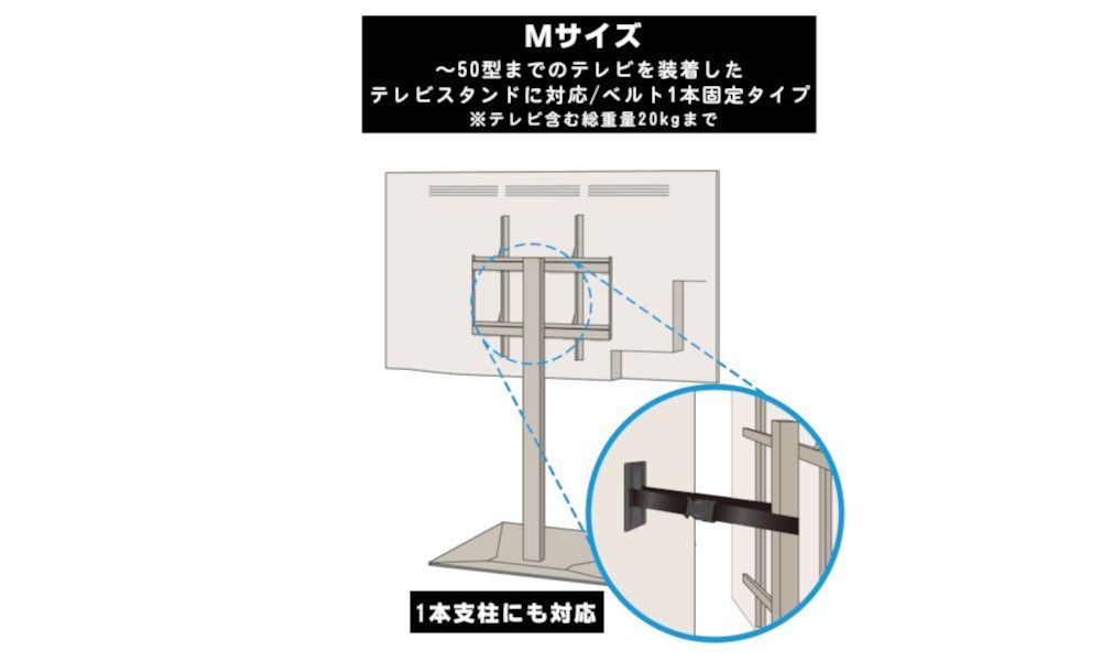 壁寄せテレビスタンドのデザインを損なわず、しっかり地震対策! プロセブン(Pro7)の「ベルトストッパー テレビスタンド用(TSB-SN1051B)」です。