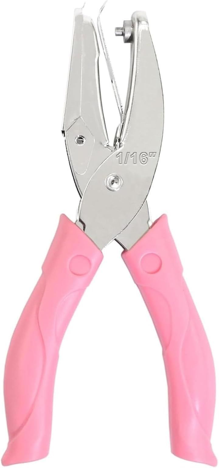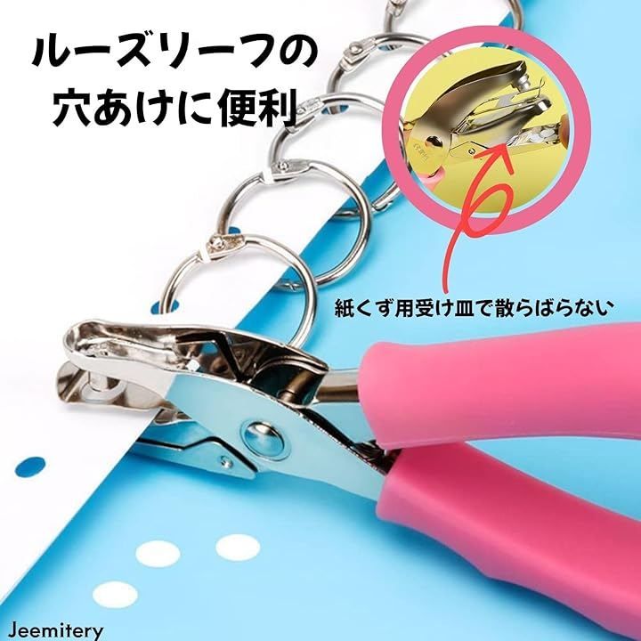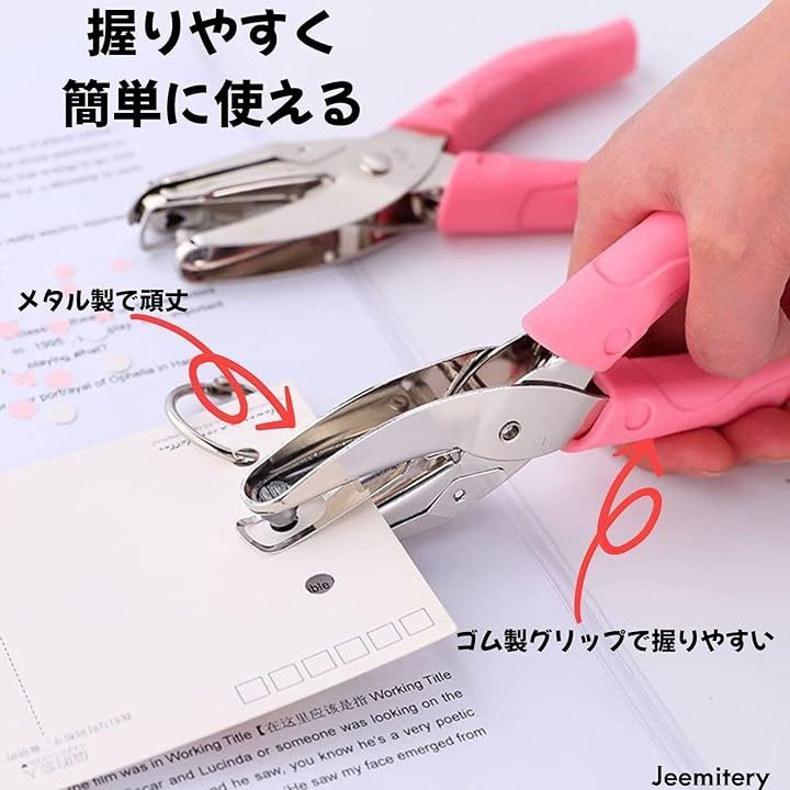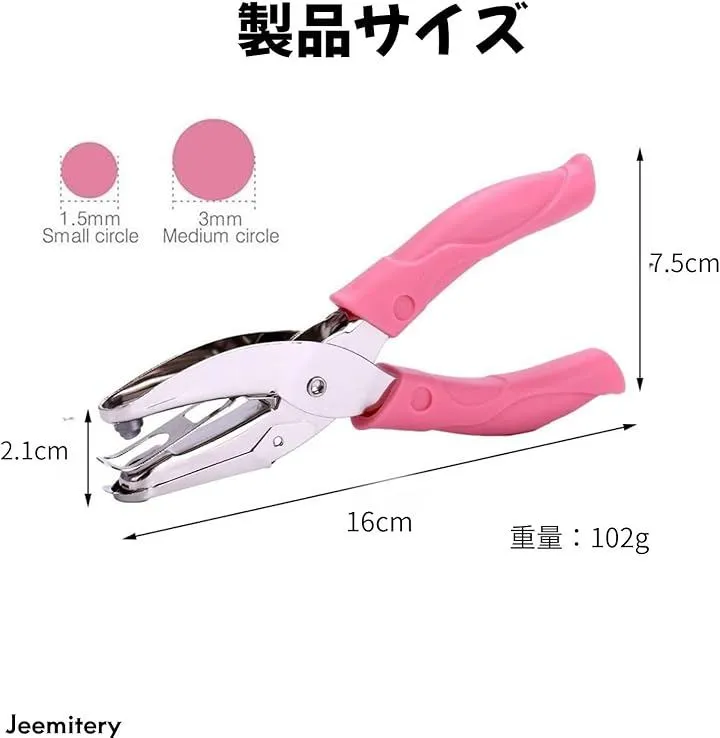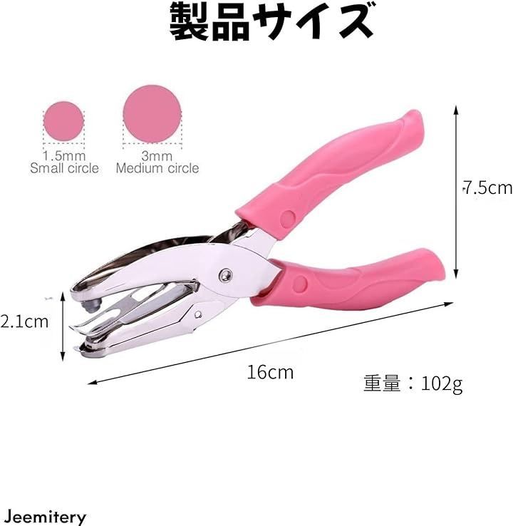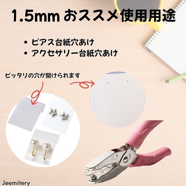 Jeemitery 穴あけパンチ 1穴 金属ペーパーパンチ 小さい 丸 ピアス用 ピアス台紙用 手持ち 丸穴 (ピンク, 1.5mm小丸穴)