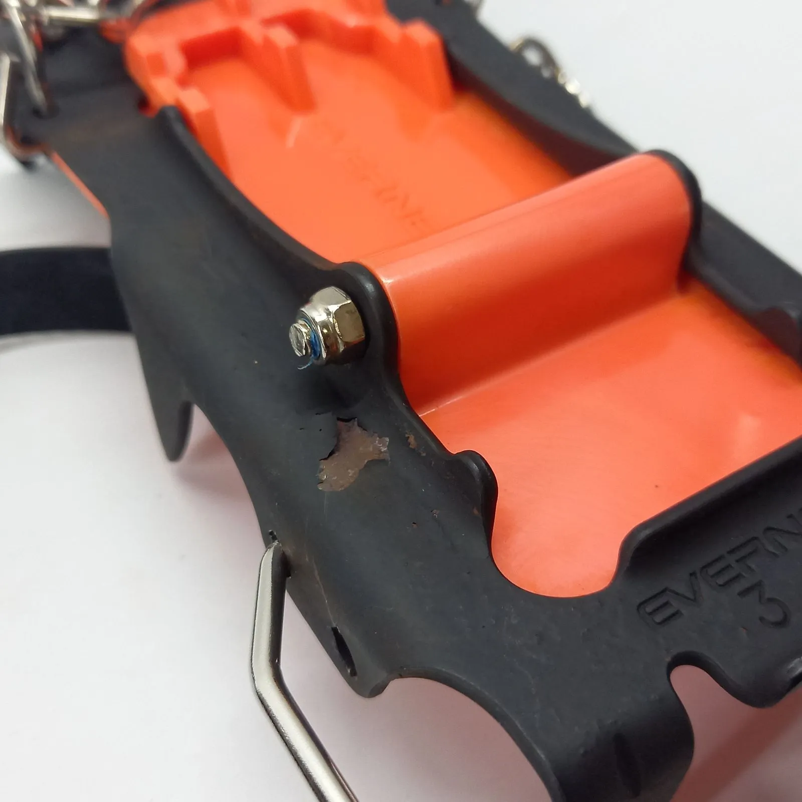 【状態】 訳あり未使用長期保管品になります。 一部塗料剥げあり(画像参照) 現状でのお渡しになります。 白く静まる山道を一歩ずつ確かめながら進む時間 足元をしっかり支えてくれる装備があることで、景色を楽しむ余裕が生まれます エバニューらしい実用性を備えたこの6本アイゼンは、冬のフィールドで心強い相棒となってくれる一品です