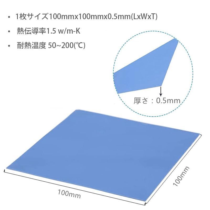熱伝導シリコンシート 熱伝導パッド 5枚セット ソフト放熱シート100mm x 100mm x 0.5mm厚シリコン熱伝導シート CPU 冷却用 GPUヒートシンク 熱伝導シート 高効率 熱伝導ギャップフィラー冷却ラジエーターフィン ブルー