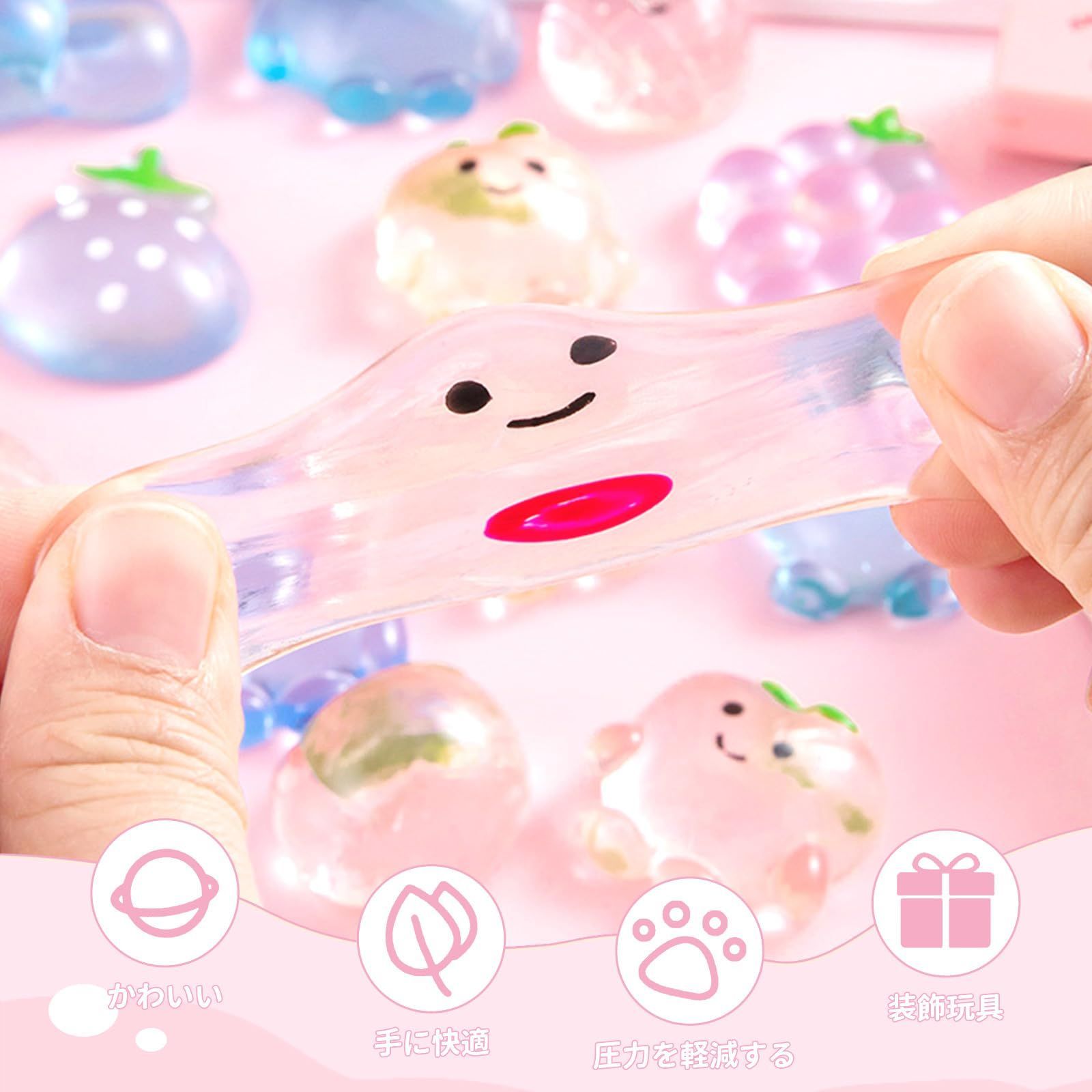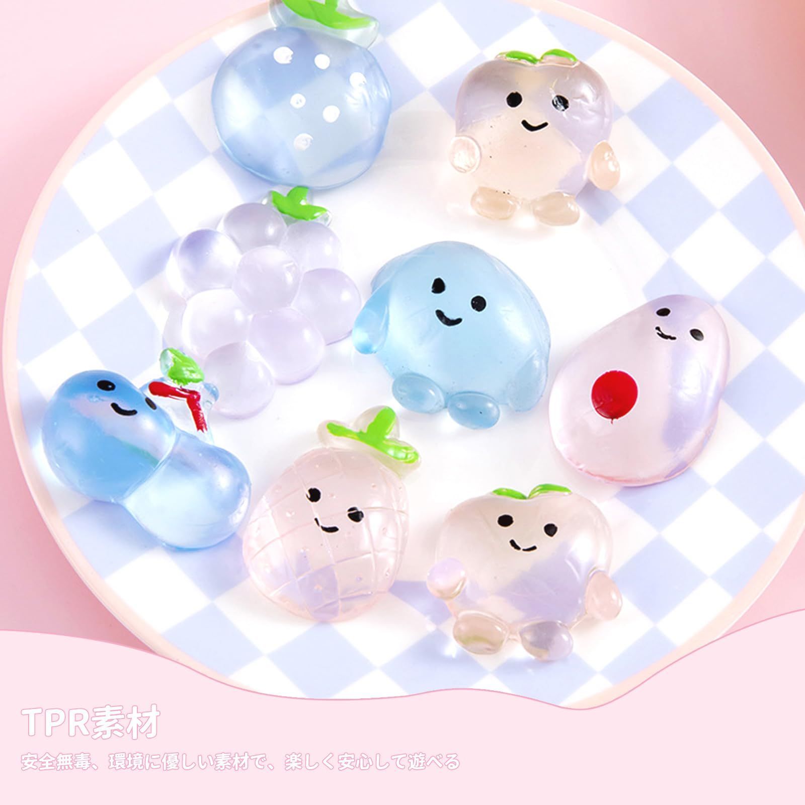 【ミニサイズで可愛いフルーツデザイン】この商品は、フルーツをモチーフにしたミニサイズのスクイーズ玩具です。可愛いデザインで、見た目も楽しく手軽に遊べます。透明なデザインにより、内部がクリアに見えるため、触って楽しむだけでなく、視覚的にも楽しいアイテムです。透明感とQ感が絶妙に融合し、見た目も触り心地も楽しめます。