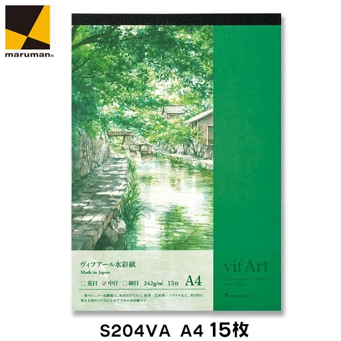 ヴィフアール 水彩紙 パッド 中目 <A4>(15枚入り)242g/m2 5冊セット【マルマン】S204VA 無地 アートペーパー スケッチブック