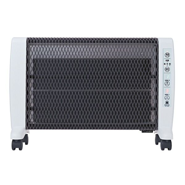 【Zenken】アーバンホットRH-3000 カラー ホワイト(RH-3000) 仕様 外形寸法:幅65×高さ43×奥行き24cm(本体奥行8cm) 質量:約6.3kg コード:約2.5m 電源:AC100V 50/60Hz 定格電流:10.0A 消費電力:[強]1000W [中]750W [弱]500W [自動]室温センサーによる強・弱モード自動切り替え タイマー:ON/3~9時間(1時間単位)OFF/1~4時間(1時間単位) 安全装置:転倒時OFFスイッチ・温度過昇防止装置(サーモスタット、温度ヒューズ)・電流ヒューズ・切り忘れ防止タイマー(8時間) 暖房の目安:4.5畳~7畳 素材 ABS樹脂、PC樹脂、鋼板 商品について