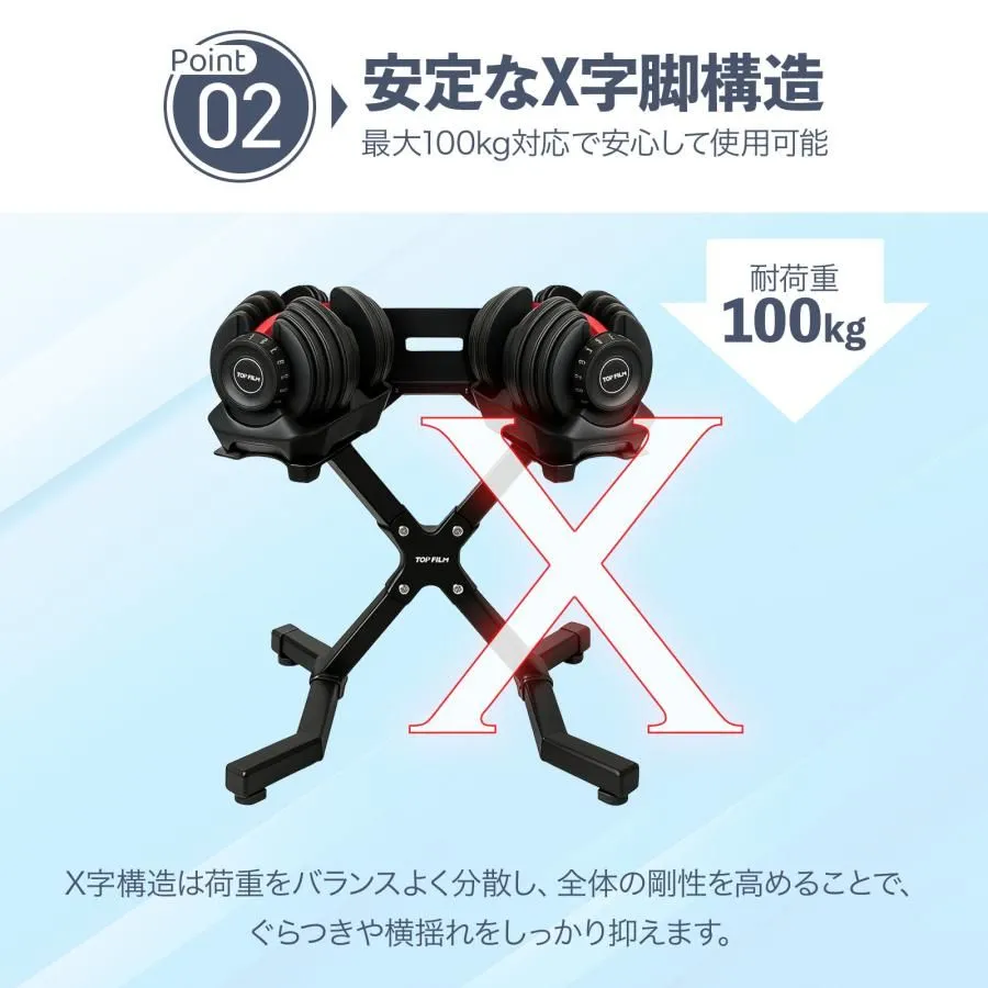 負担軽減✨ダンベルスタンド 耐荷重100kg タブレットスタンド搭載 X字スタンド