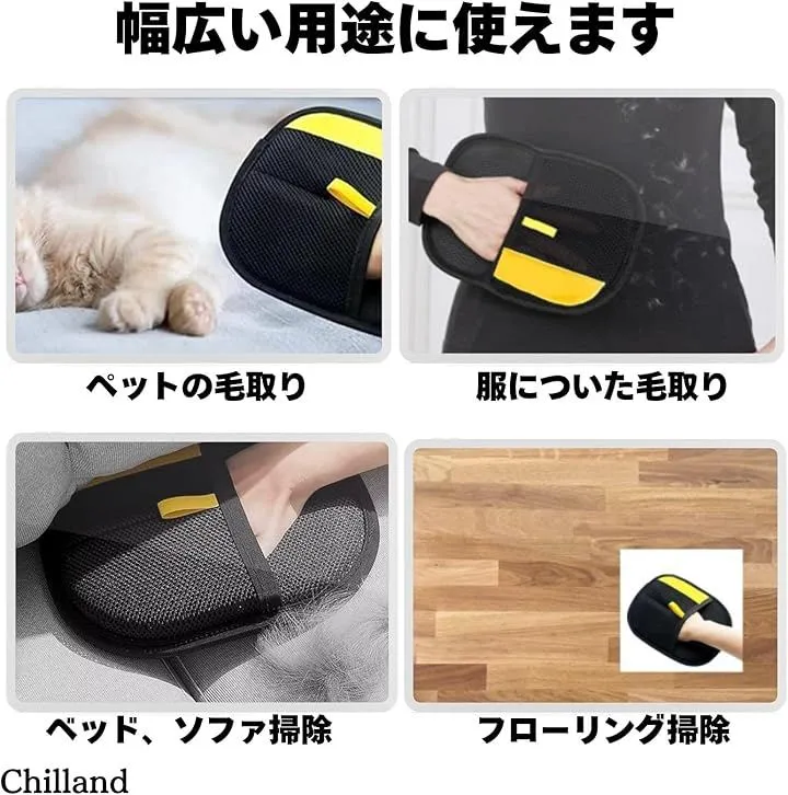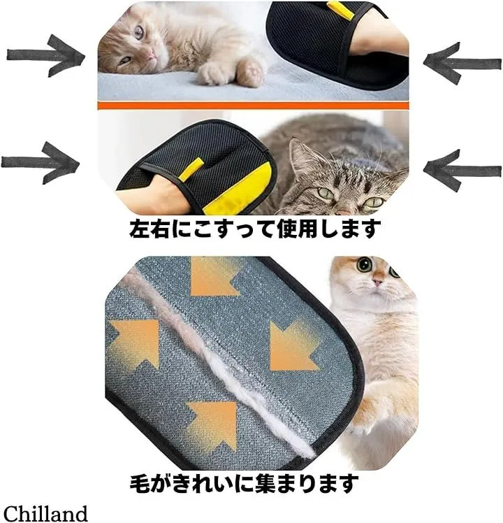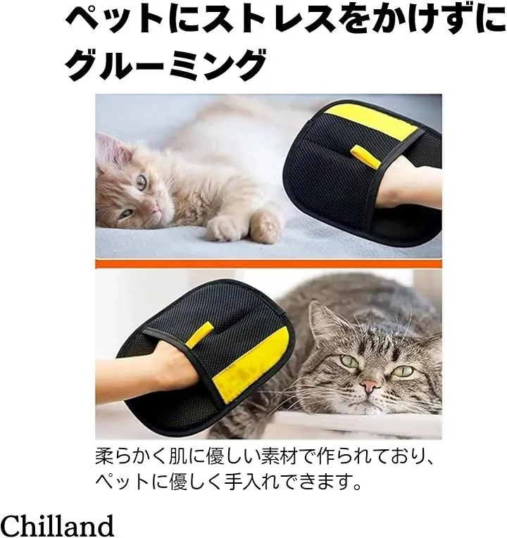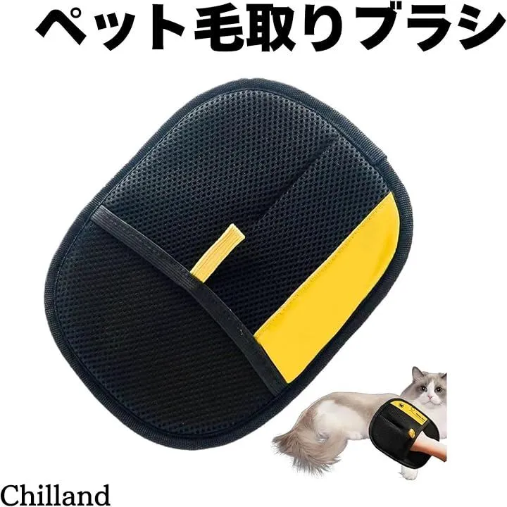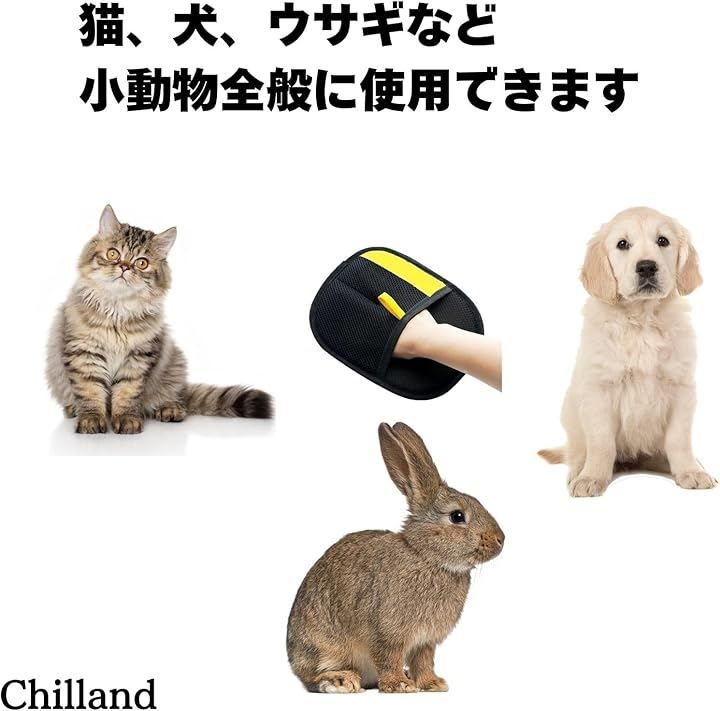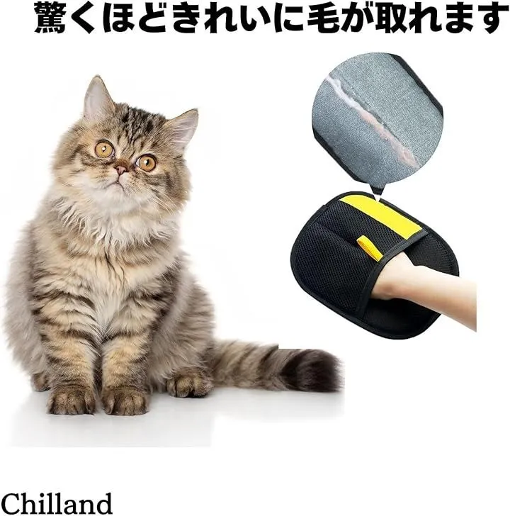 Chilland 猫の毛除去手袋 ペット犬猫グルーミンググローブ ペット用静電毛取り手袋 ペットグローブ猫のグルーミング用手袋 除毛ブラシ 猫の毛取りブラシ ウサギ 小動物用 (イエローxブラック)