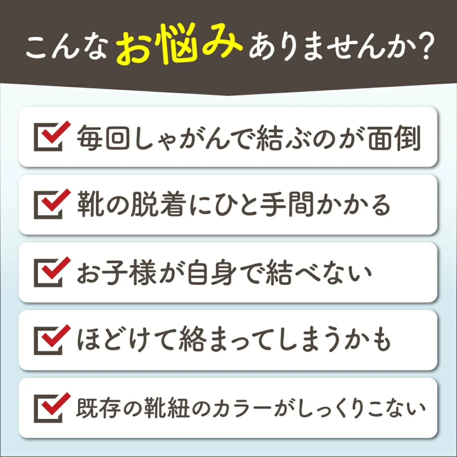 【 伸縮性あり、紐なし 】金属素材を使用しており靴紐結ばない 、着脱が簡単です。紐止め金具 金属歯で固定しているため、歩いていても靴紐がほどけない、結び直す手間が省けます。 シューレースは丈夫で柔らかい質感の合成繊維を使用しており、耐久性に優れ、長く愛用できるよう設計されています。 取り付け金具はシューレースに合わせたカラーを厳選し、丈夫で壊れにくい仕様になっています。 最後までご確認頂き誠にありがとうございました。 上記をご確認頂き、ご購入いただけましたら幸いです。 何かご不明な点がございましたらお気軽にメッセージからお問い合わせ下さい。