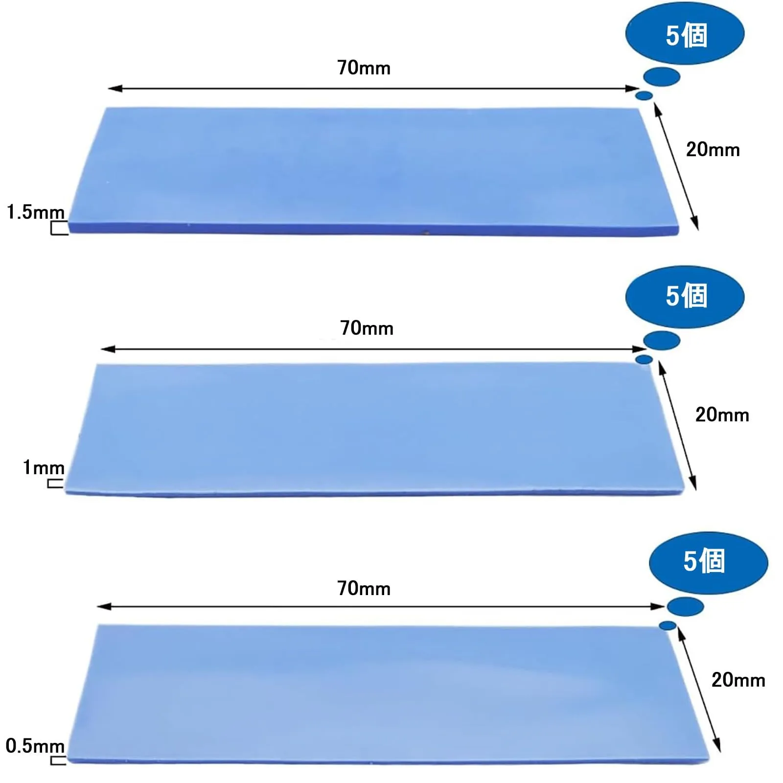 【数量限定】両面放熱シリコーンパッド 冷却ラジエーターフィン 熱伝導 シリコン 15個 3種類の厚さ 粘着性と柔らかさ SD CPU サーマルパッド GPU LED ICチップセット冷却用 厚さ0.5mm TerraShine .0mm .5 mm
