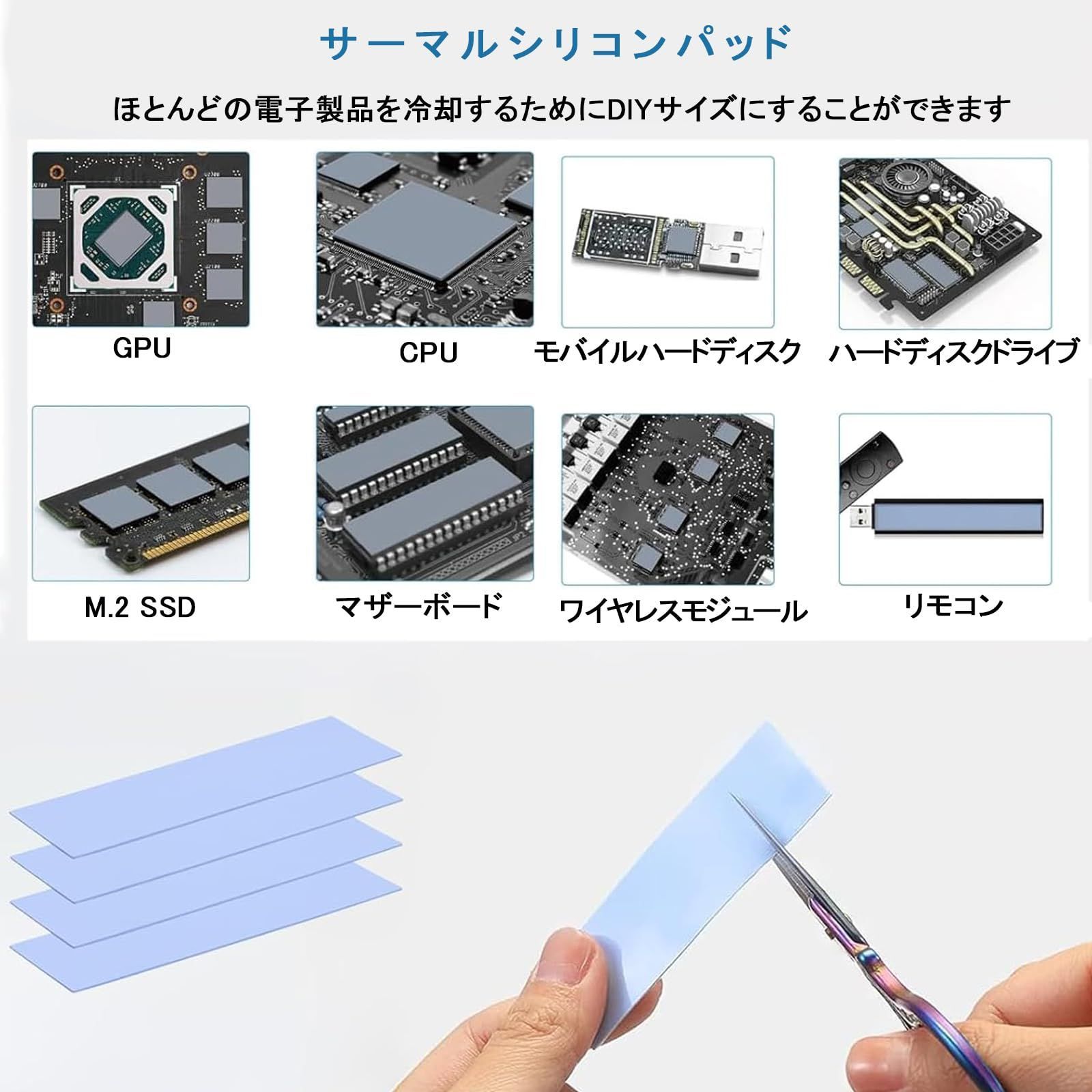 【広範な適応性】厚さ0.5mm、1mm、1.5mmのシリコンパッドがそれぞれ5つずつあります。M.2 PCIE NVME 4.0 SSD、PCIE NVME 3.0 SSD、またはPS 5 M.2 PCIE NVME 4.0 SSDなど、さまざまなタイプのM.2をご使用であれ、このハードディスク導熱シリコンパッドはすべて完全に適合し、ハードディスクに全面的な保護と熱支援を提供します。 最後までご確認頂き誠にありがとうございました。 上記をご確認頂き、ご購入いただけましたら幸いです。 何かご不明な点がございましたらお気軽にメッセージからお問い合わせ下さい。