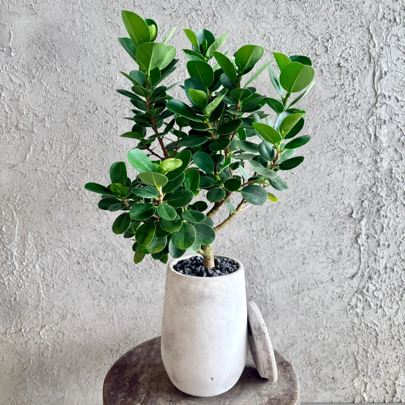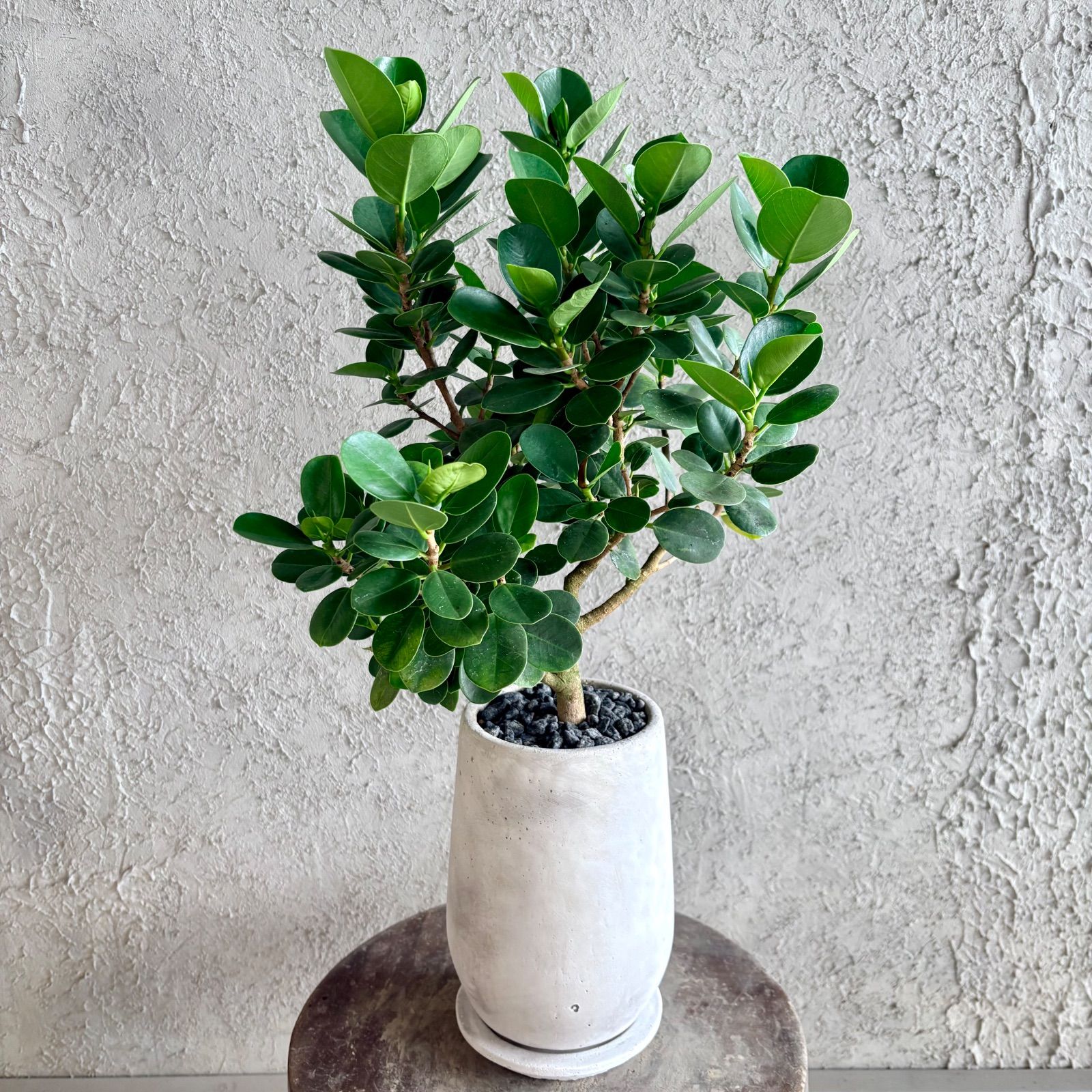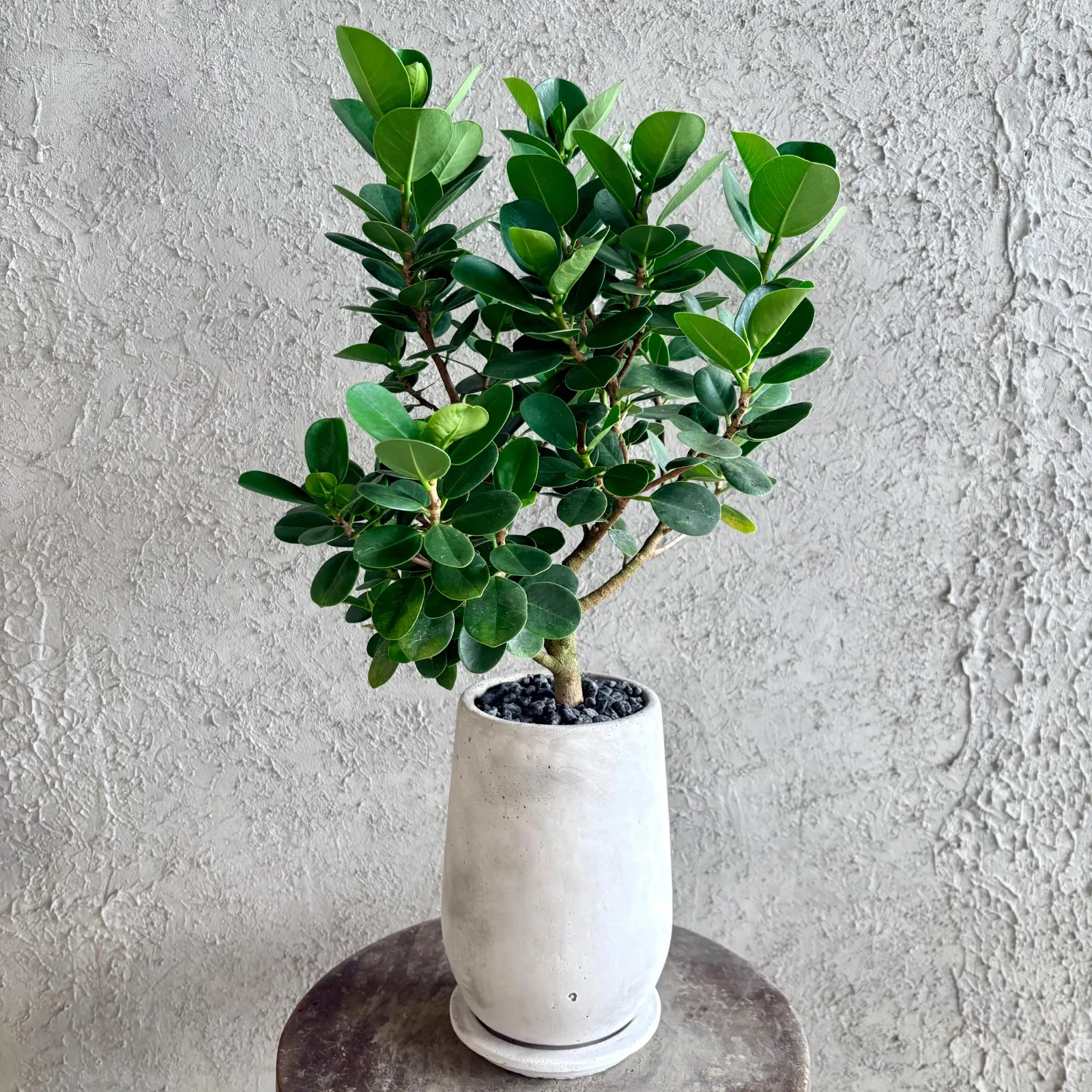 【厳選された植物と鉢】希少品種 美形 パンダガジュマル 5号 テラコッタ性鉢植え ホワイト 受け皿付き