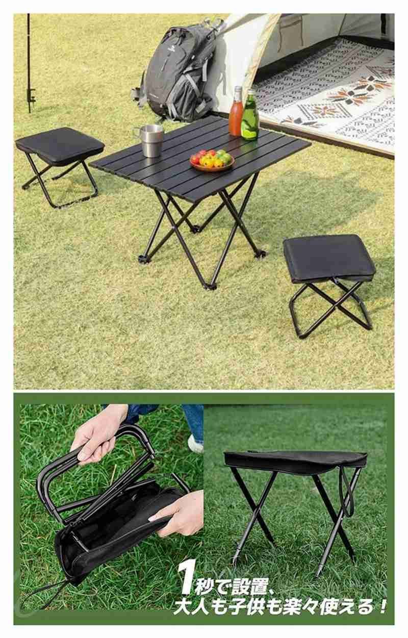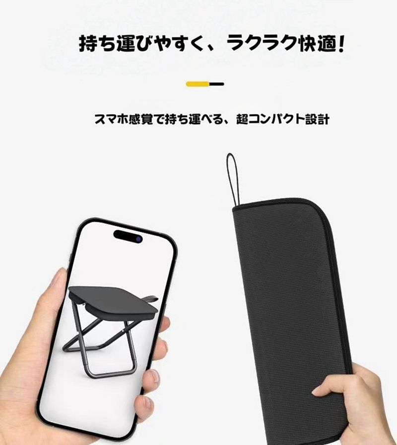 ■ 驚きのコンパクトさと軽量設計!折り畳めばスリムで持ち運びがとても楽。アウトドアはもちろん、室内の急な来客時もサッと取り出せて便利です。