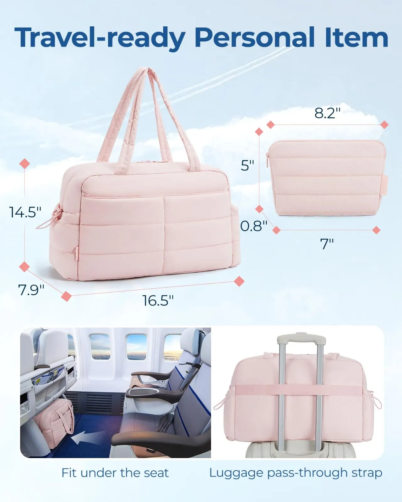 旅行に便利なパーソナルアイテム: TSA対応のダッフルバッグで、飛行機の座席下にぴったり収まります。外側のジッパーポケットは、フライト中に必要なアイテムへの素早いアクセスを可能にします。また、スーツケースのハンドルに簡単にスライドしてしっかり固定されるため、空港での移動がスムーズになります。