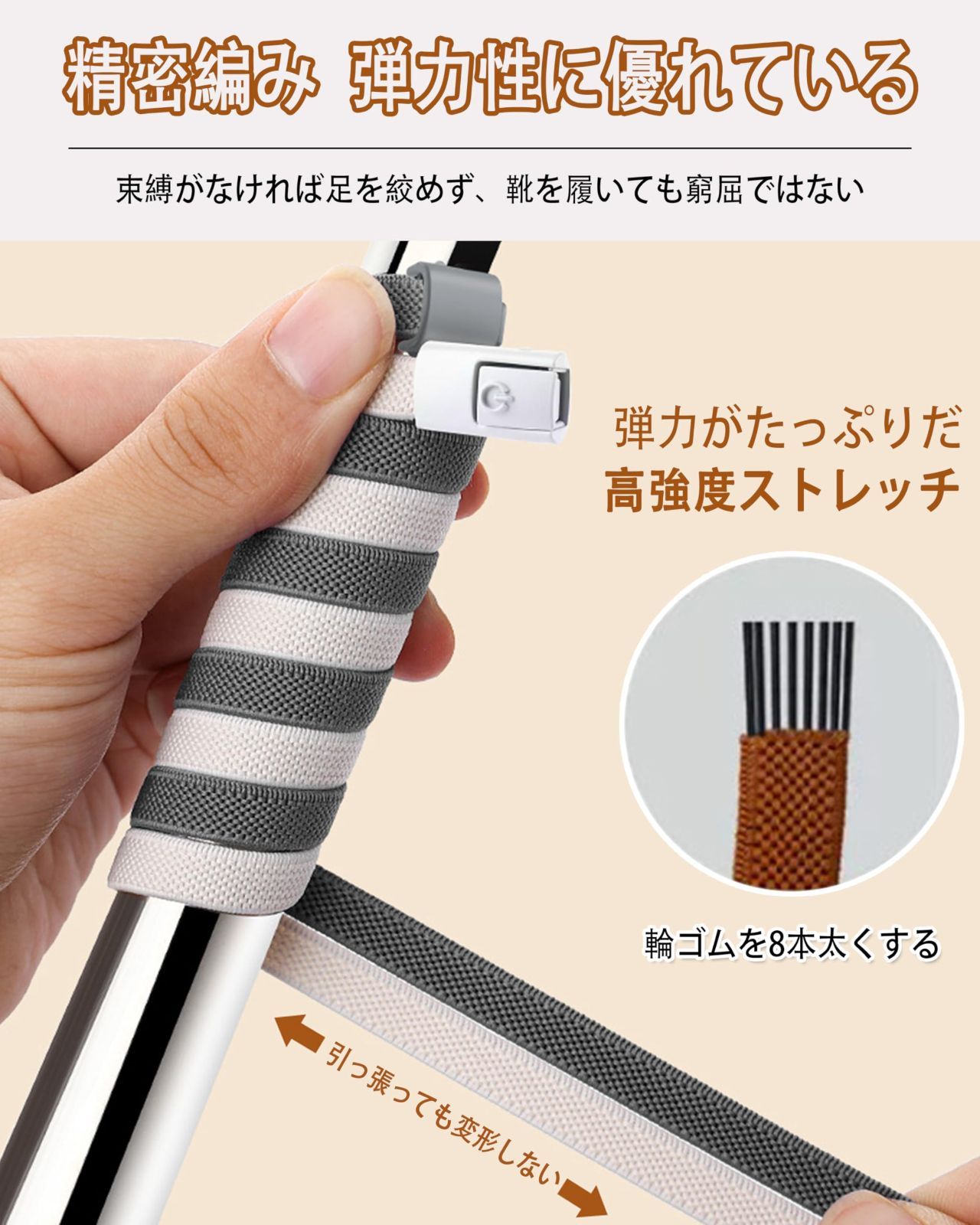 【材質】伸縮ゴム素材の靴紐!靴紐の長さ:約100cm±5cm,留め具サイズ:約2.6cm×11cm×0.6cm
